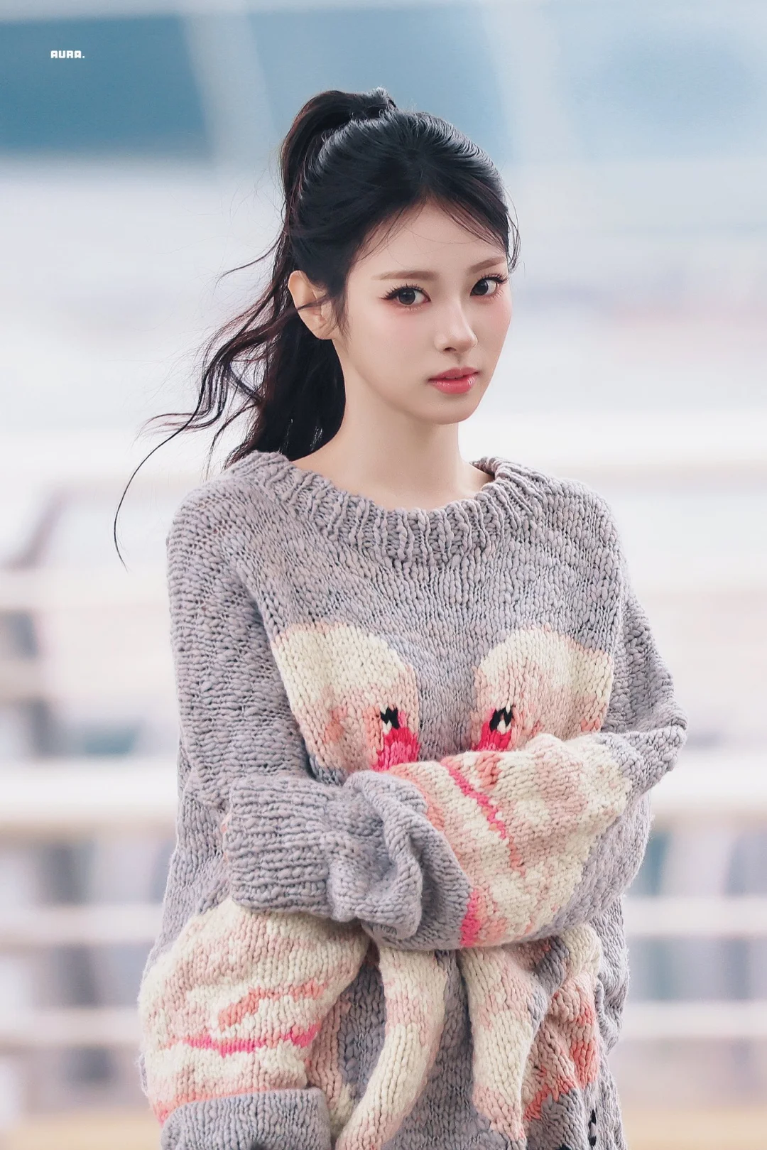 Anna今日机场私服,毛衣配长靴又瘦又高挑