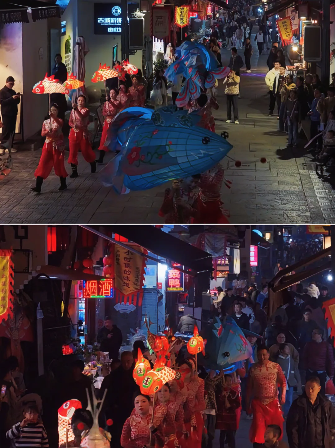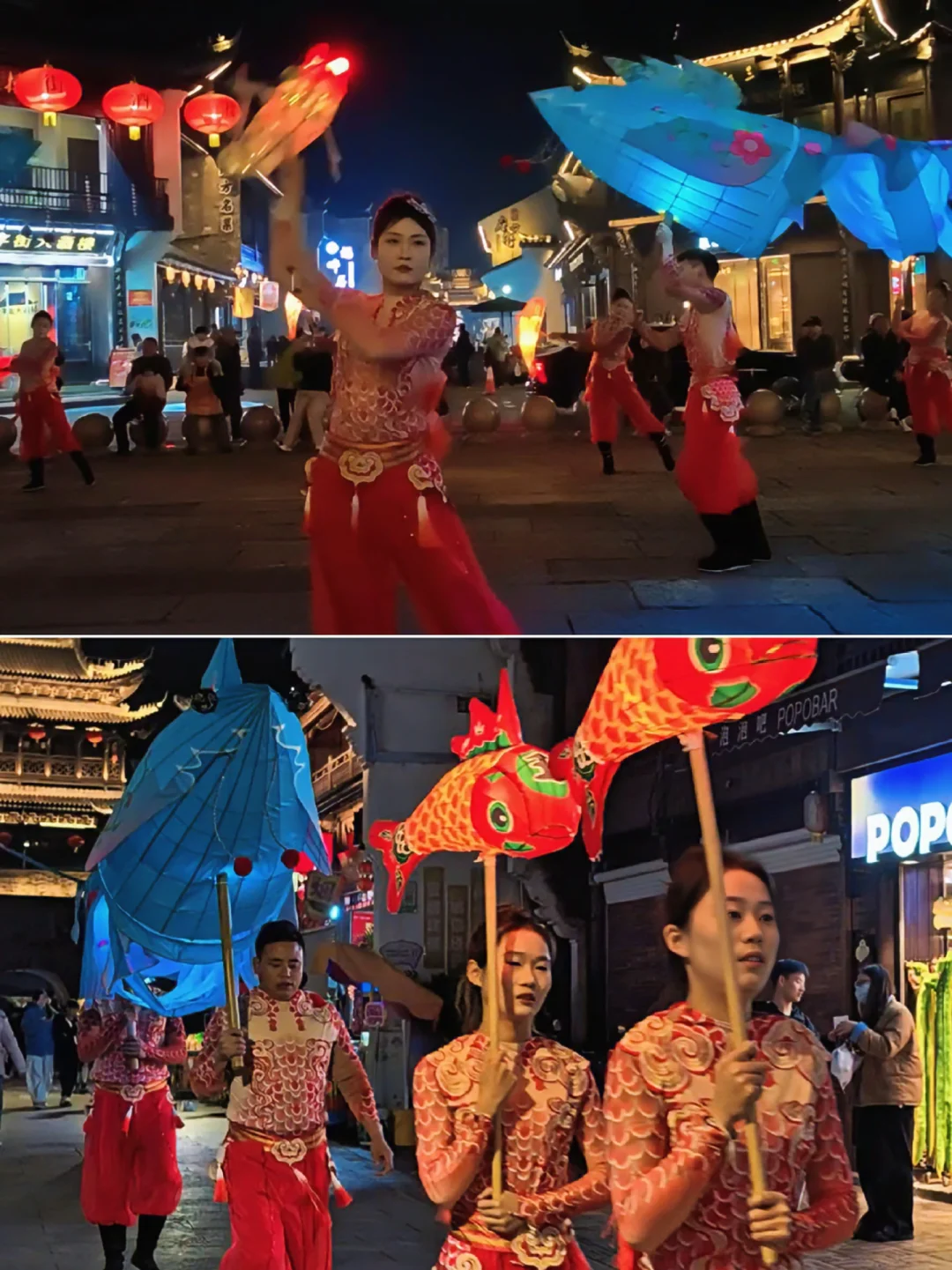✅梦幻虾灯巡游:每周五、六晚19:00-19:30,湛蓝虾灯蜿蜒古街,非遗表演如梦似幻。
