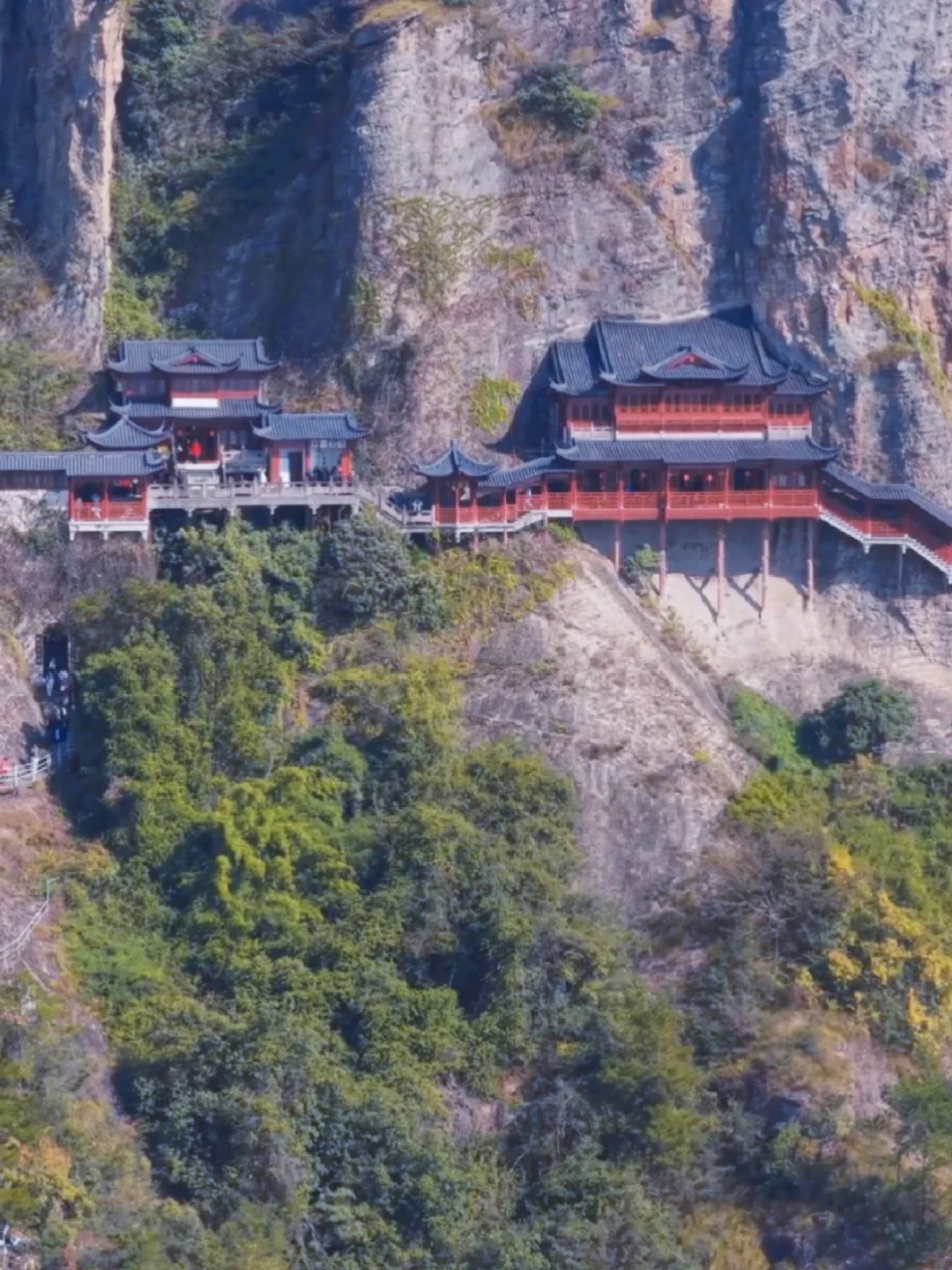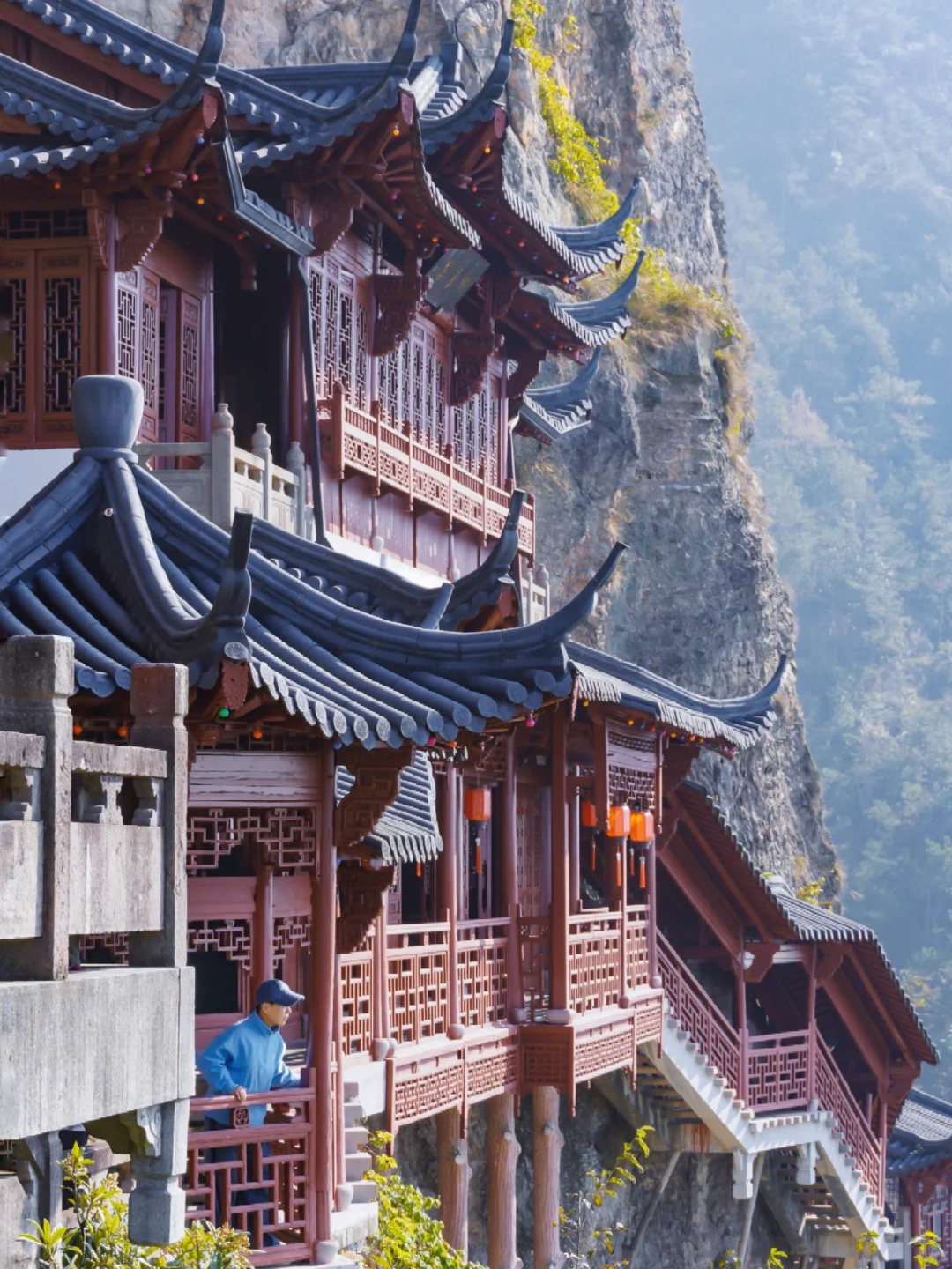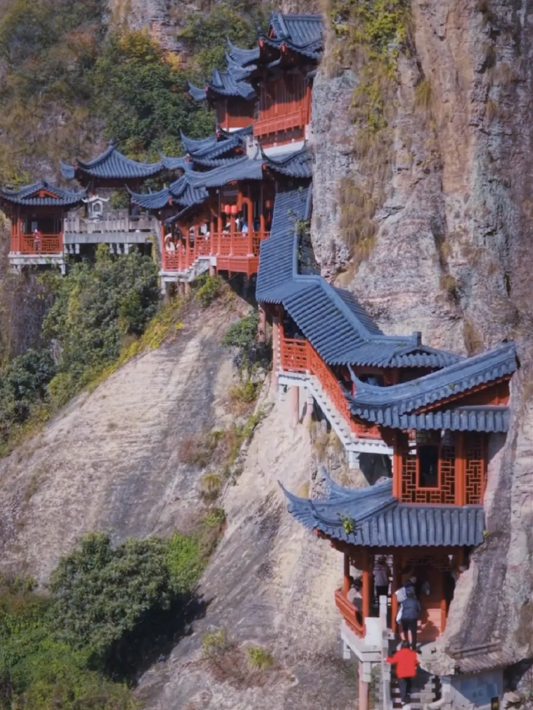 ✅江南悬空寺:元代的寺庙一半嵌在山壁里、一半吊在绝壁上,走上去跟踩云似的(我腿抖~),《庆余年2》同款场景,随手拍都是有feel的大片~