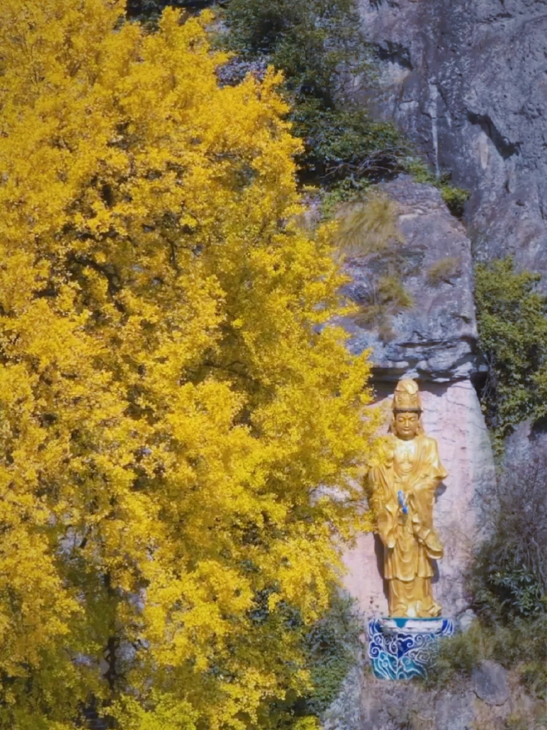 ✅728岁银杏:11月中下旬满树鎏金,落叶铺成黄金毯,古刹黄叶相映,治愈值拉满。