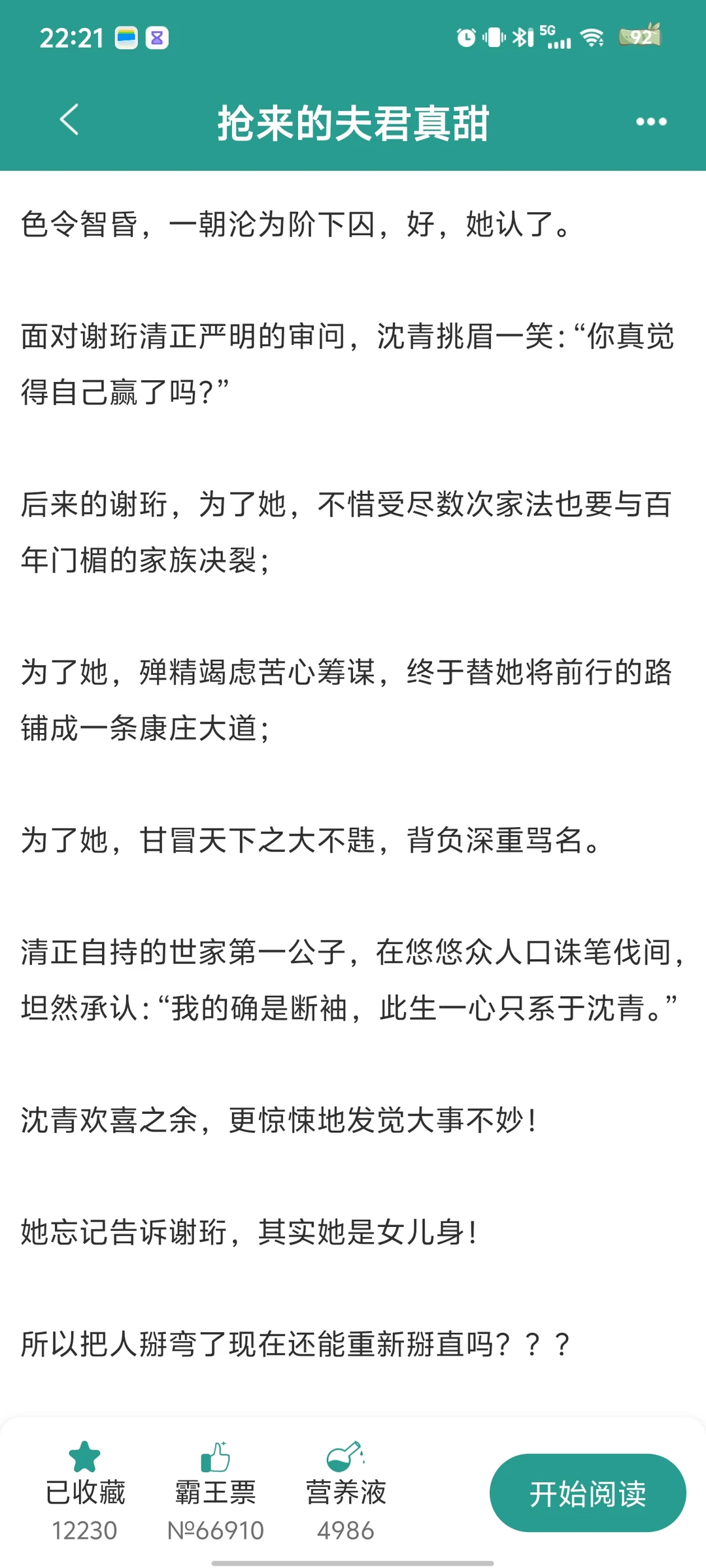 《抢来的夫君真甜》by钱娇娇 刚完结的文,一共118章 [种草R]女主是占山为王的山匪,放诞不羁,男主是奉旨来剿匪的官员,谦谦君子,世家楷模,cp张力拉满! [桃子R]从一开始剑拔弩张水火不容,到男主步步沦陷,疯狂怀疑自己,以为自己是一个断袖,为了女主,跪祠堂,挨鞭刑,冒天下之大不韪……等他彻底接受自己是个断袖的时候,突然发现对方是个女子😂😂拉扯感太绝了!
