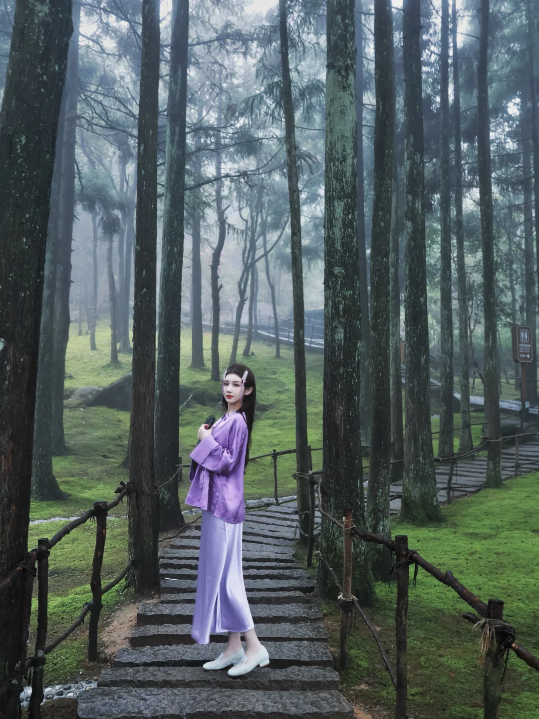 来拍照了 这里拍照很出片 紫色果然很有韵味 新中式氛围感拉满了 紫色最有韵味 人间绝绝紫 紫色系渐变 好不容易爬到山上,结果下雨了,但是来都来了,还是拍几张先永远相信新中式的魅力