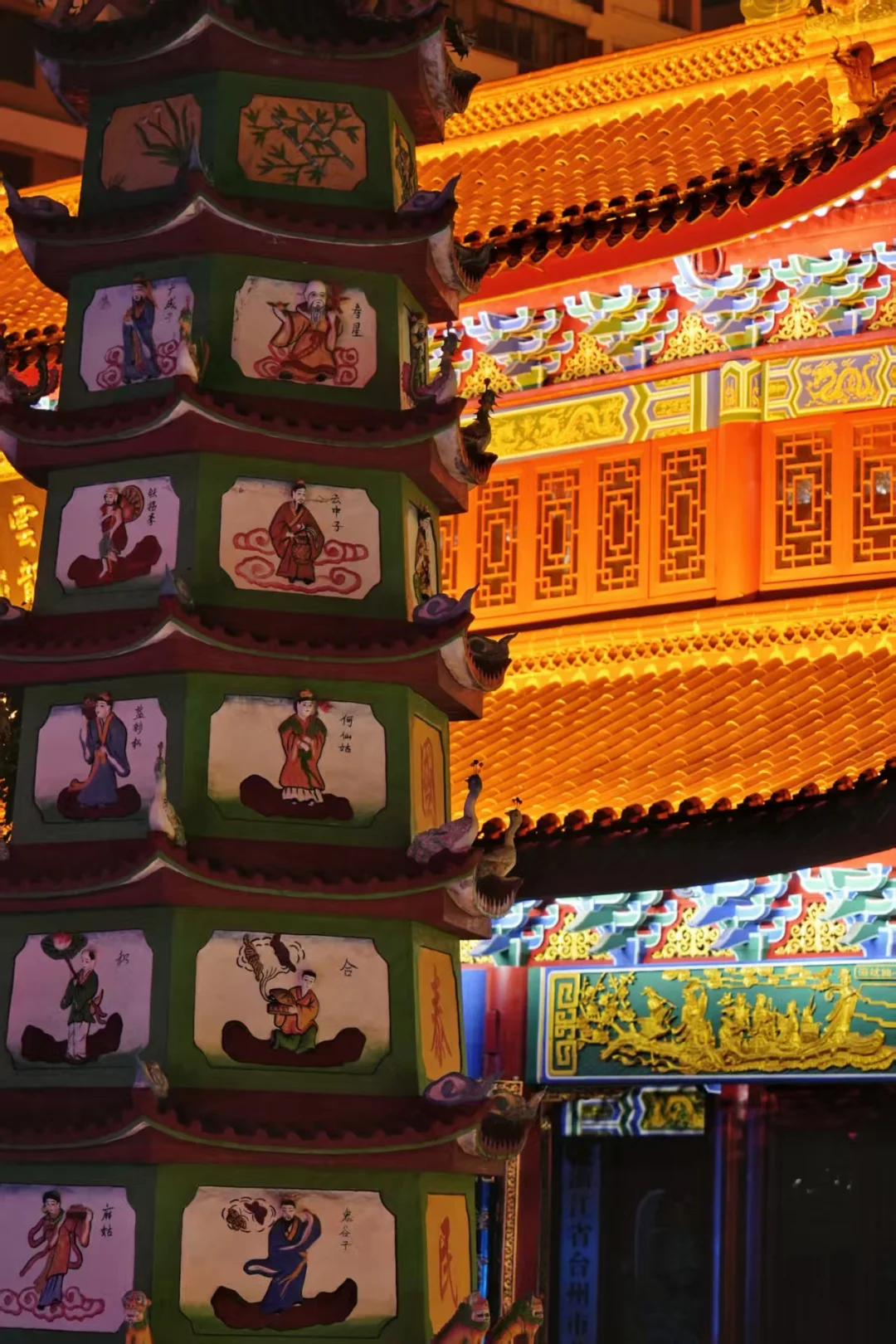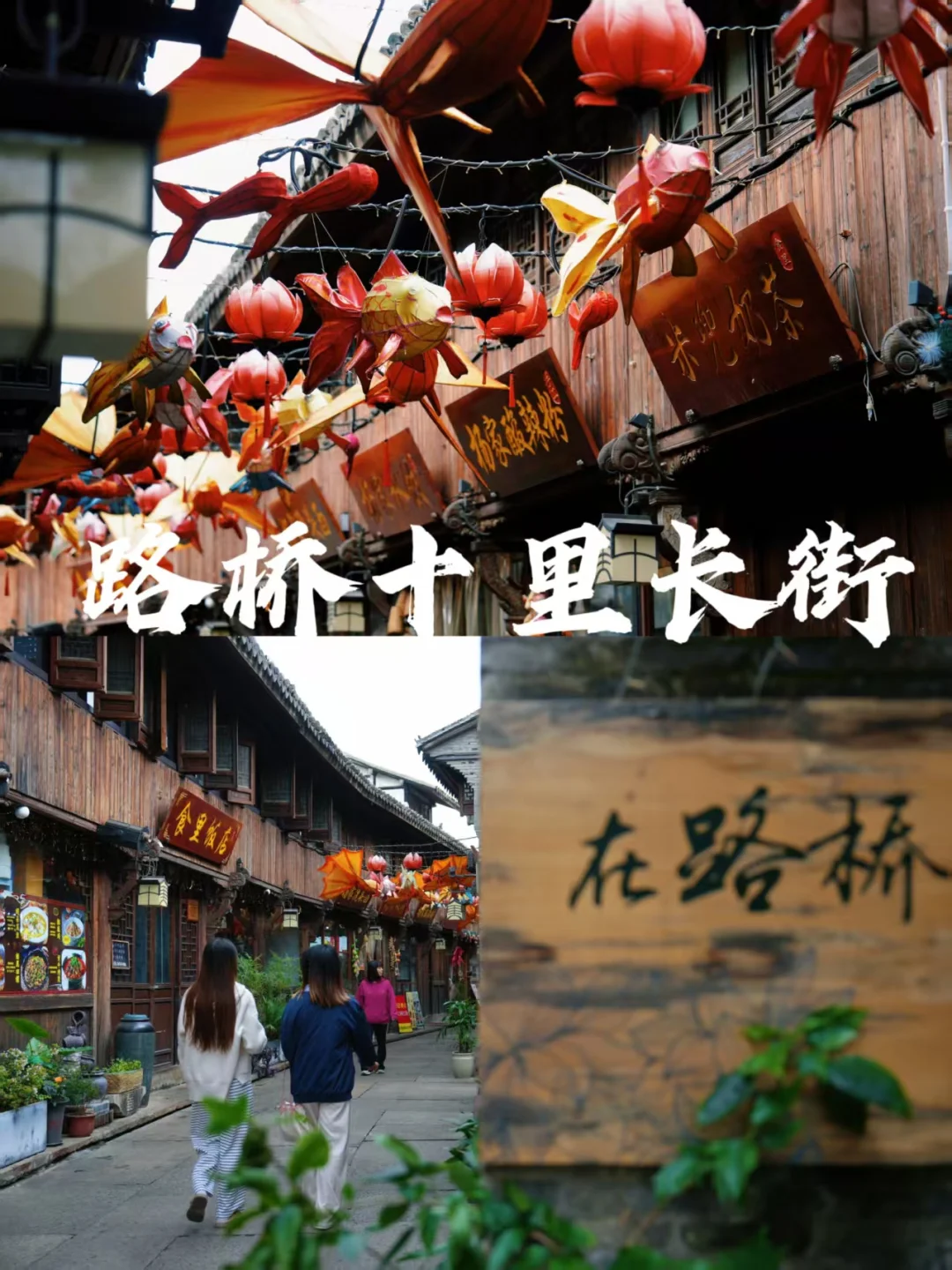 在路桥十里长街,你可以在「月河舫」泛舟南官河之上,途经虹桥、福星桥、福星阁等经典地标,两岸青瓦白墙、灯笼高挂,有时还能欣赏灯光秀等表演,将宋韵美景尽收眼底。