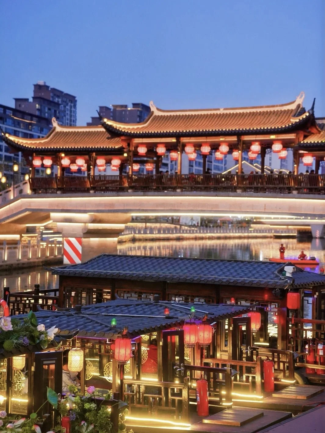 华灯初上的官河水街超美!青石板路、小桥流水,两侧灯笼次第亮起,逛吃本地小吃,吹着晚风看夜景,超惬意~