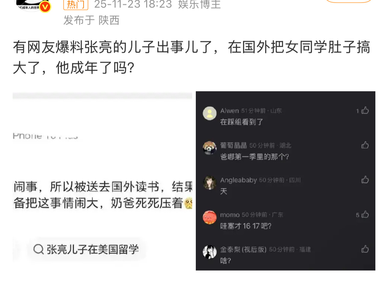 未满18岁两次因恋爱上热搜,张亮儿子再陷争议,星二代管教引热议张亮儿子天天