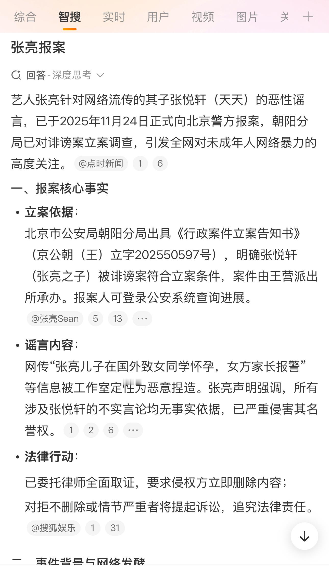 张亮报案张亮报案并发了严正声明。因为有人造谣他未成年儿子张振轩。
