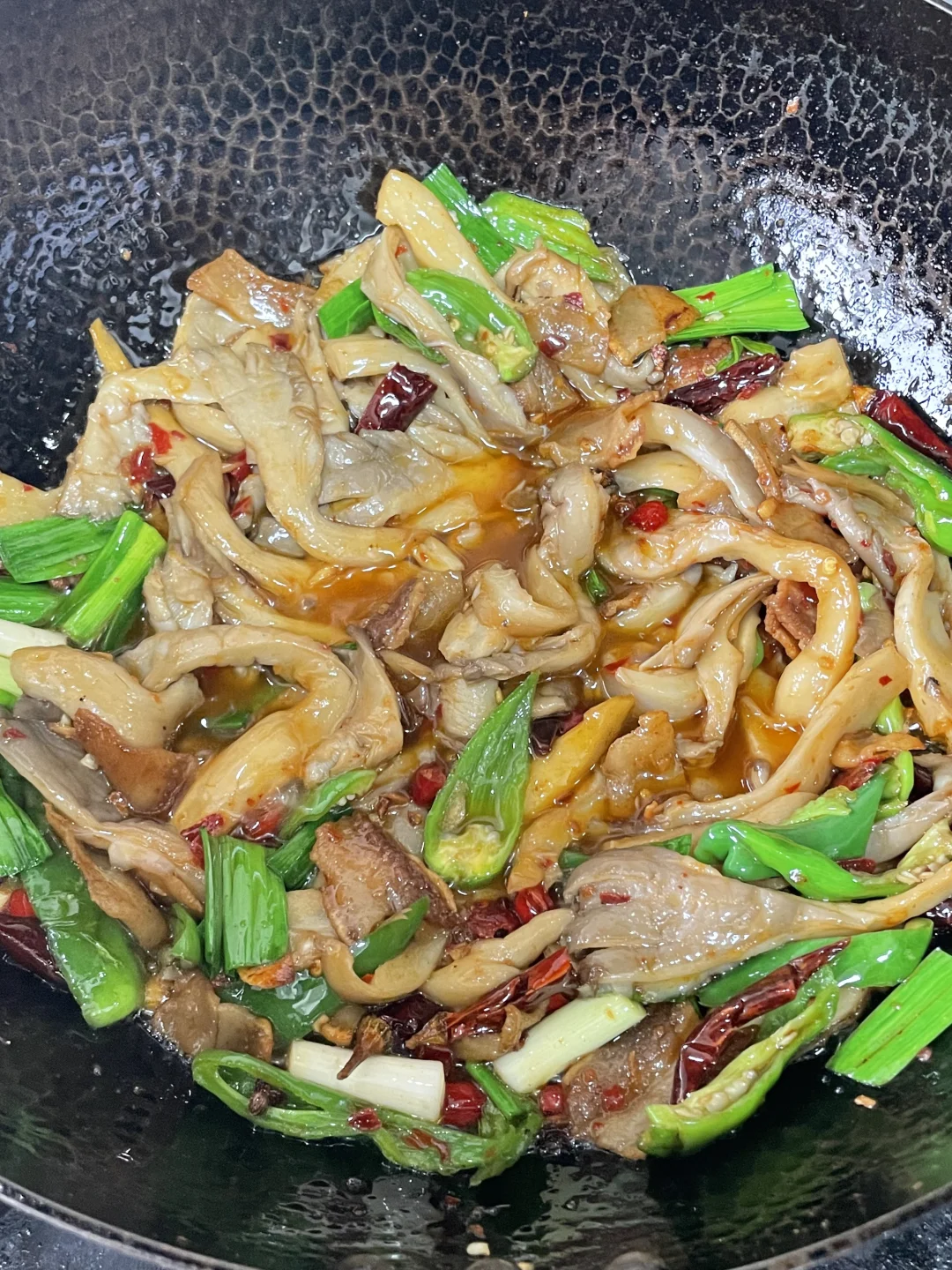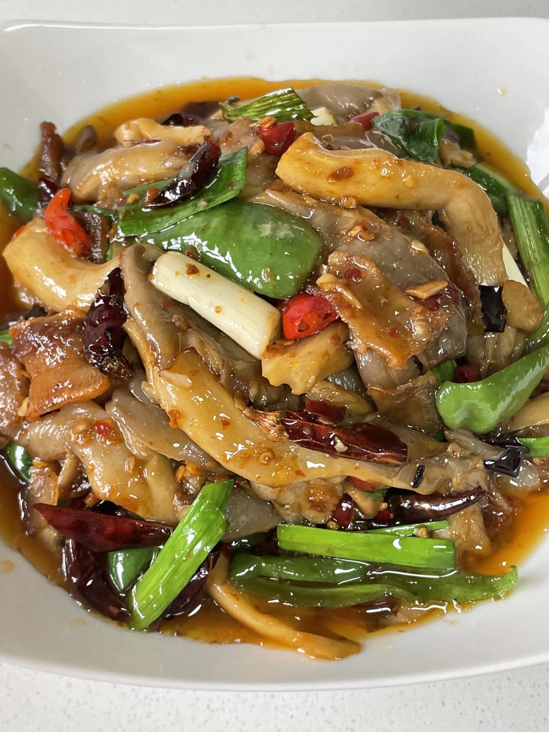 姐妹们,今天给大家出一个巨下饭的家常菜平菇炒肉。这样做出来的肉不会腥也不会柴,平菇也入味,真的是巨下饭。喜欢的姐妹可以尝试做一下。 🌶️食材:平菇,肥肉 👩🍳做法: 1⃣️肥肉切片,青椒切块,准备一些干辣椒、小米辣,糍粑辣椒,蒜,蒜苗切段,平菇焯水备用。 2⃣️起锅肥肉炼出油脂,从锅边来一圈米酒,放入佐料炒香,加入一勺生抽炒香,倒入平菇,青椒,加一勺蚝油,适量盐,鸡精,蒜苗,翻匀即可出锅。这样做出来的平菇炒肉真的是巨下饭,喜欢姐妹试试吧