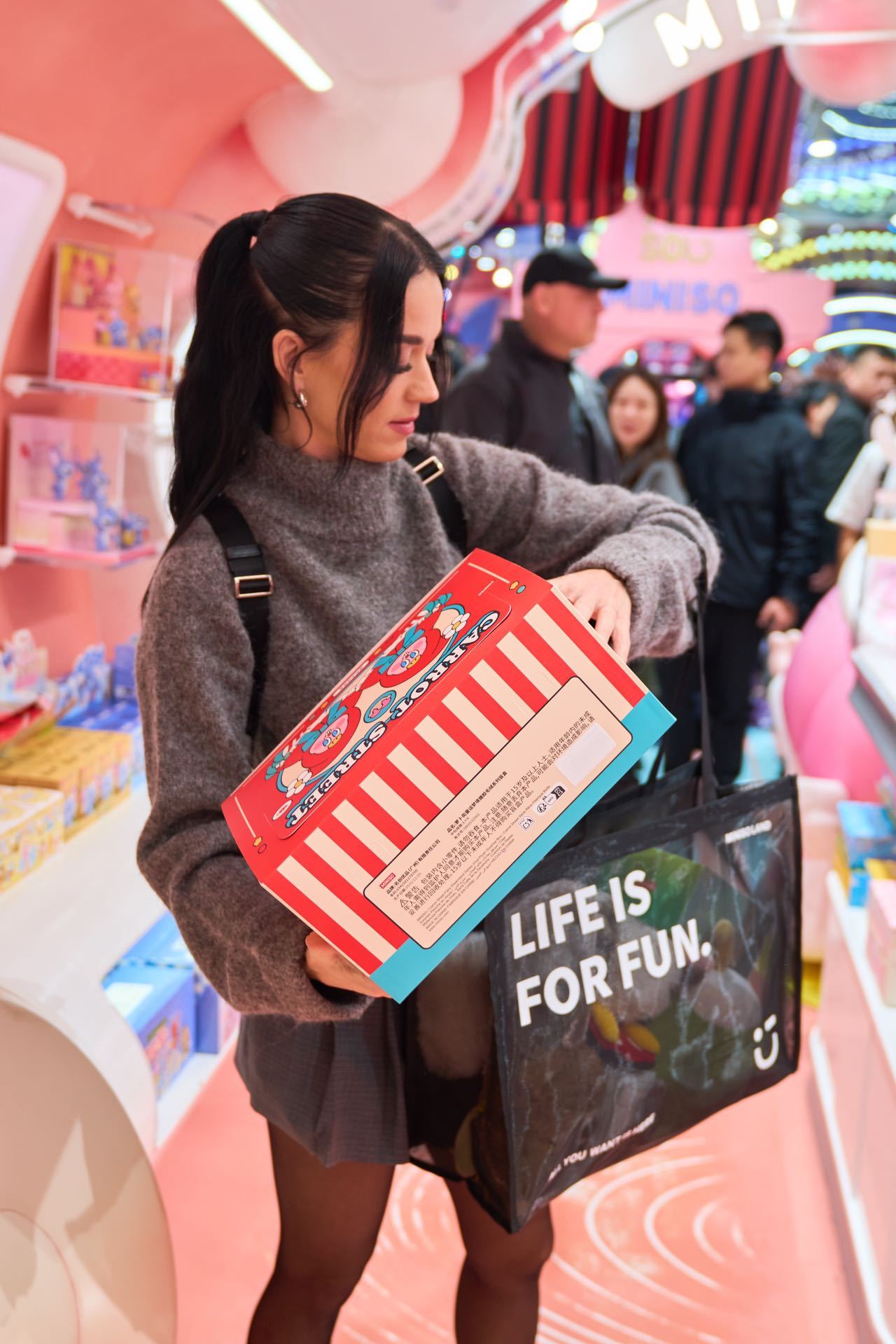 娱乐圈是不是在全球名创团建 继范丞丞买满后备箱、王嘉尔抱走一堆玩偶、帕姐用几米长的购物小票装满了十几袋商品后,水果姐凯蒂·佩里和小酒窝也被偶遇在名创扫货!现场酒窝妹妹选购超认真,还和妈妈董璇一起和YOYO合照!水果姐抱着盲盒眼神里的喜欢都要溢出来了!从顶流爱豆到国际歌手,都逃不过名创的可爱魔法?只能说:全球名创,娱乐圈团建指定场地实锤啦!!