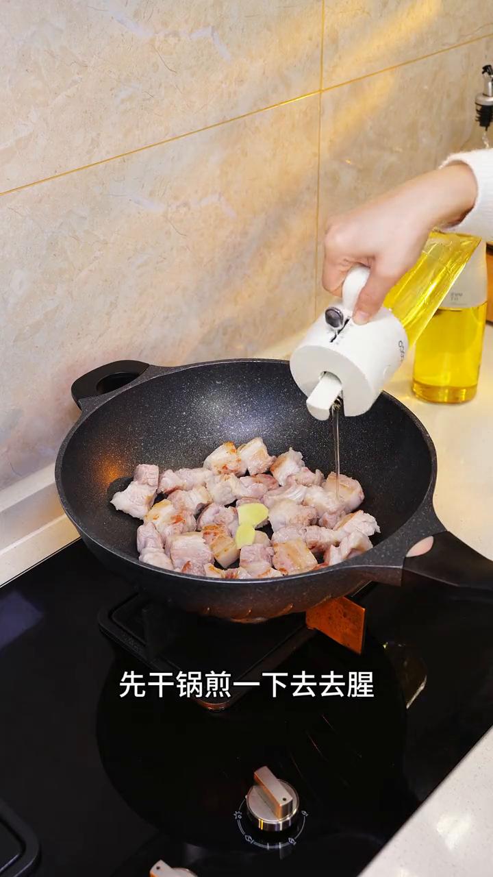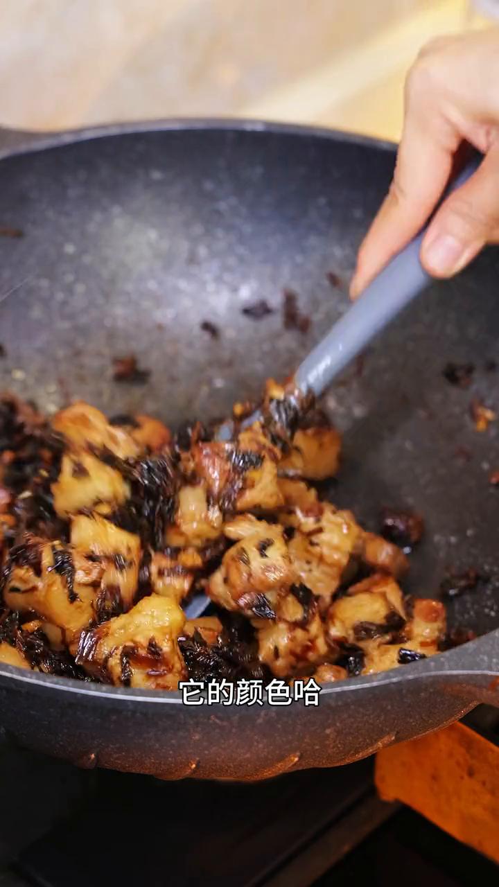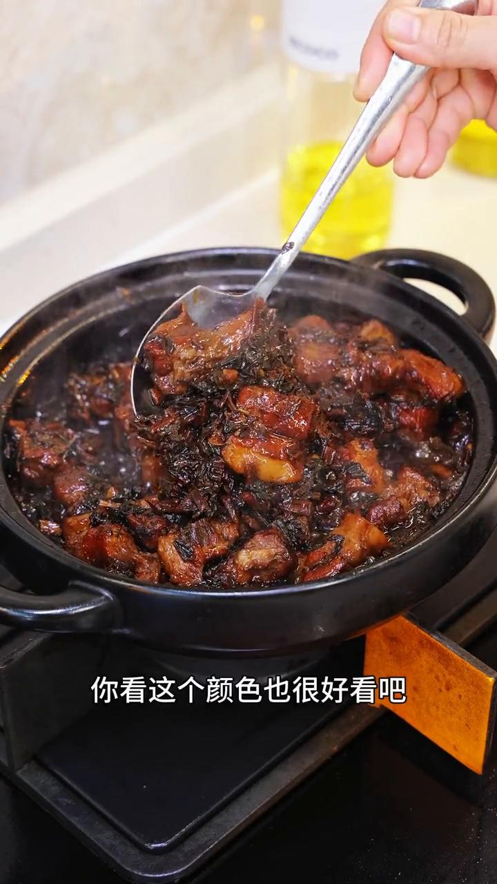 真的是太香了,这个子不要焖的太干,用这个汤汁来拌着饭吃可香了,中午我家小儿子又可以炫两碗米饭了。 ·梅菜干需要提前浸泡一下,这一扎里面拿个半扎就够了,它是由青菜蒸熟了再直接晒干,没有用盐腌过的,所以它是没有味道的。每餐我就是拿这么一小把,用80度左右的开水来泡,大概是泡半个小时到一个小时,然后再清水多洗两遍。 ·这个叶子能打开洗就打开来洗,打不开也没关系,挂起来晒的也不会很脏,泡出来这个颜色的水也是正常的。洗干净了之后切碎。 ·五花肉可以稍稍切的厚一点,猪皮我是切掉了,给它崩过几次油之后就很怕了,用来煎或者炸的时候基本上猪皮都给它切掉了。 ·先干锅煎一下去去腥,然后再放上两片姜,补点油翻炒一下,再逼出一些油来。梅菜干挺吸油,五花肉煎出来的油脂就刚刚好。 ·再放上一把蒜末增香,先把梅菜干的香味炒出来。 ·然后再来调味,调味就是盐、白糖、胡椒粉跟生抽,放不放老抽具体要看用的生抽的颜色,如果觉得颜色不够后面可以再补点老抽。 ·把生抽的香味炒出来之后再加上两碗开水,可以直接在锅里焖,大概焖半个小时的样子。我是习惯放到砂锅里来焖,焖好了之后又可以当碗直接端上桌,而且天气冷还能保温。 ·焖到最后汤汁收浓稠就可以了,这个颜色也很好看。 客家的梅菜干跟浙江一带的梅干菜味道还是不一样的,梅菜干是淡干的,味道也会更香一些。这一锅梅菜干焖五花肉真的很香,属于那种光闻味道就能不自觉吞口水的香味,你们也可以去试做一下。 点赞关注收藏。