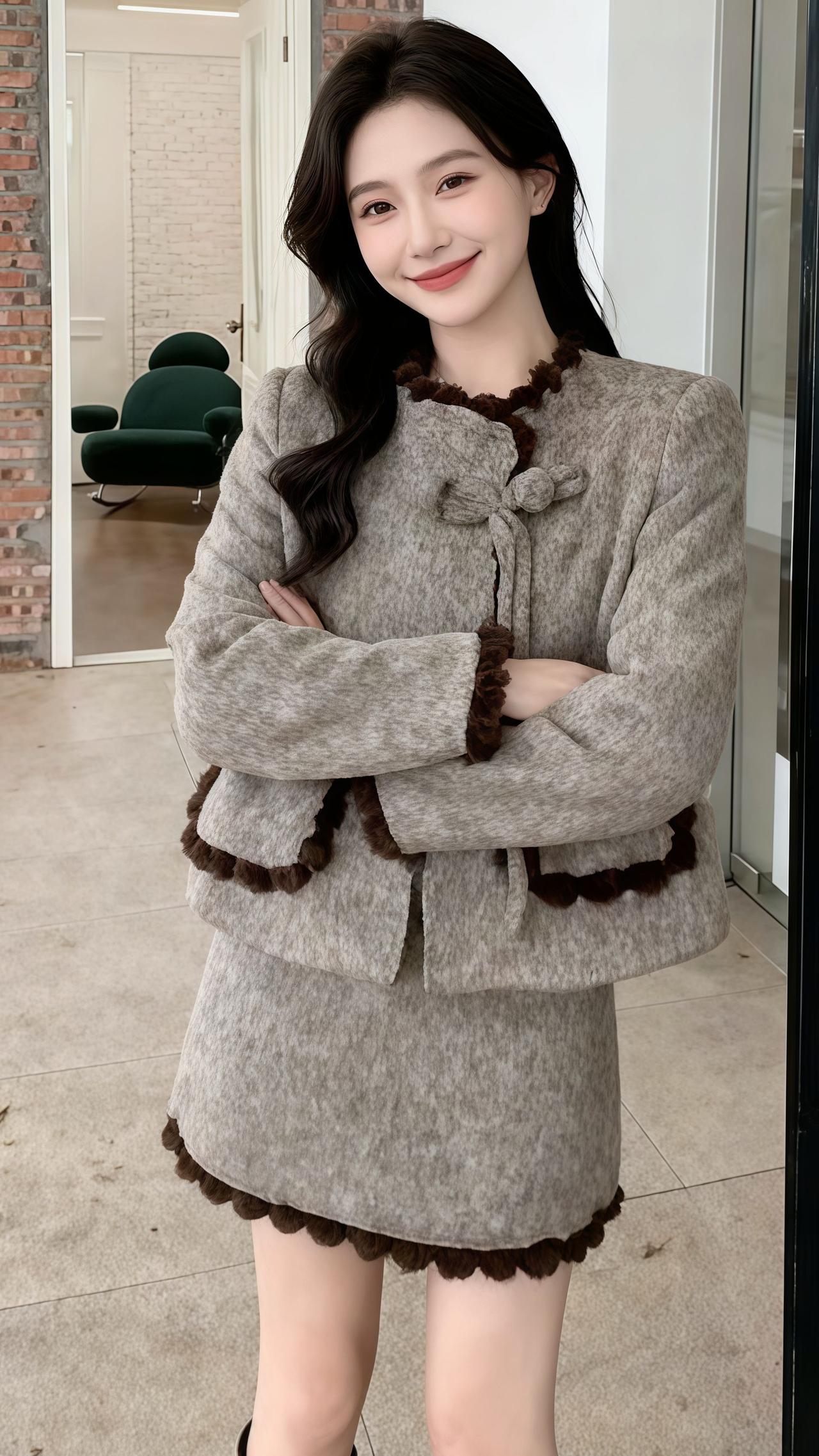 优雅气质,粉色毛衣搭配黑色裙子,室内自然光下更显温柔。如何穿得既优雅又自然?