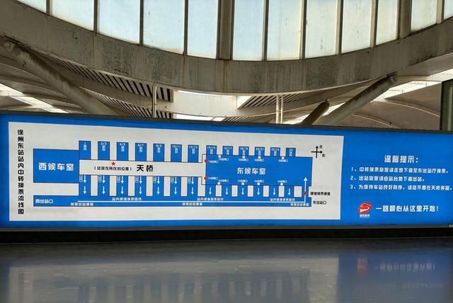 九派新闻查询发现,徐州东站设有“便捷换乘”通道,但无法直接从站台通过电梯或步梯直接上至候车室,而是需要根据指引沿着出站通道行走一段距离,快到东进站口处再上电梯进入候车室。