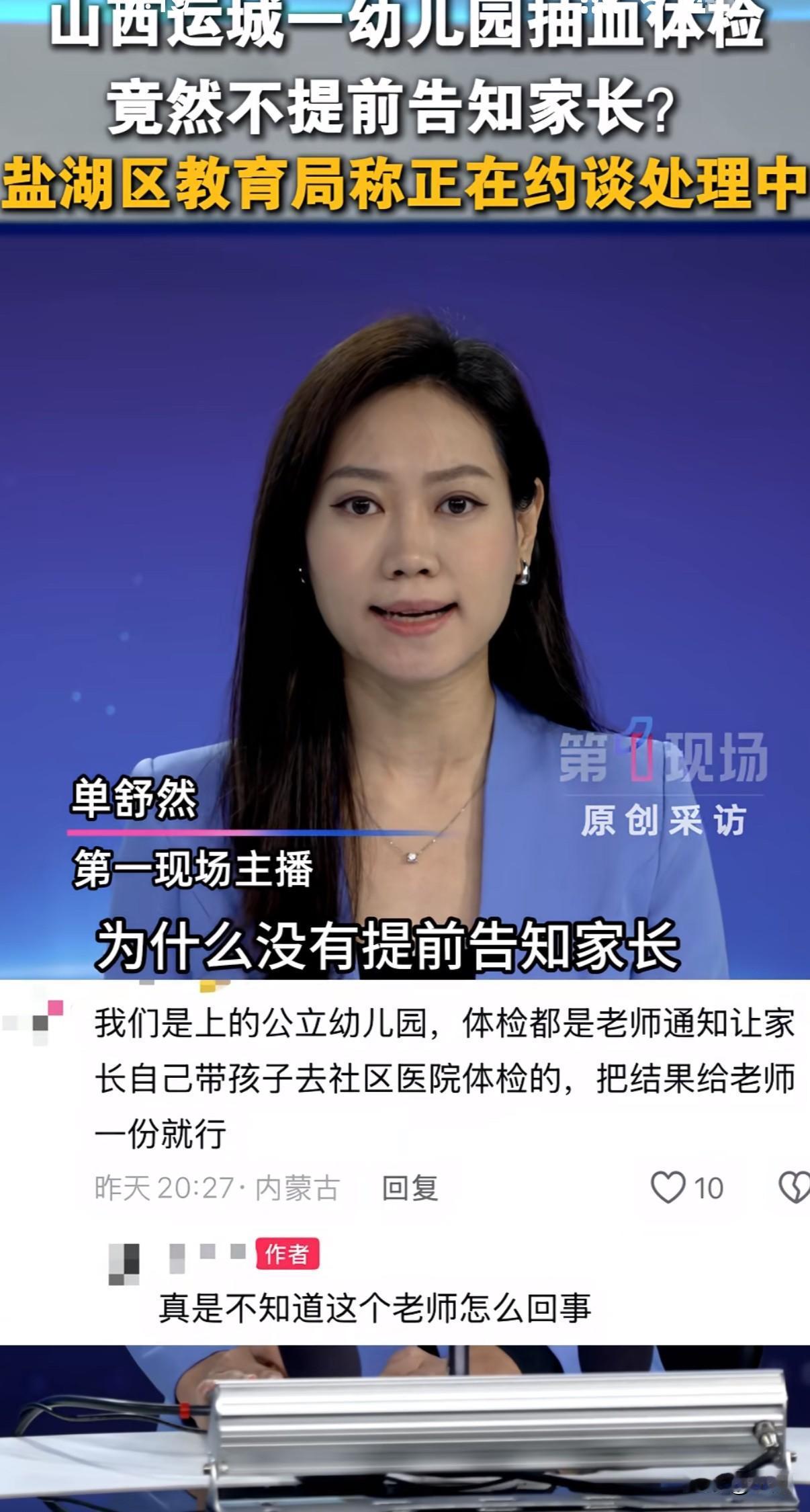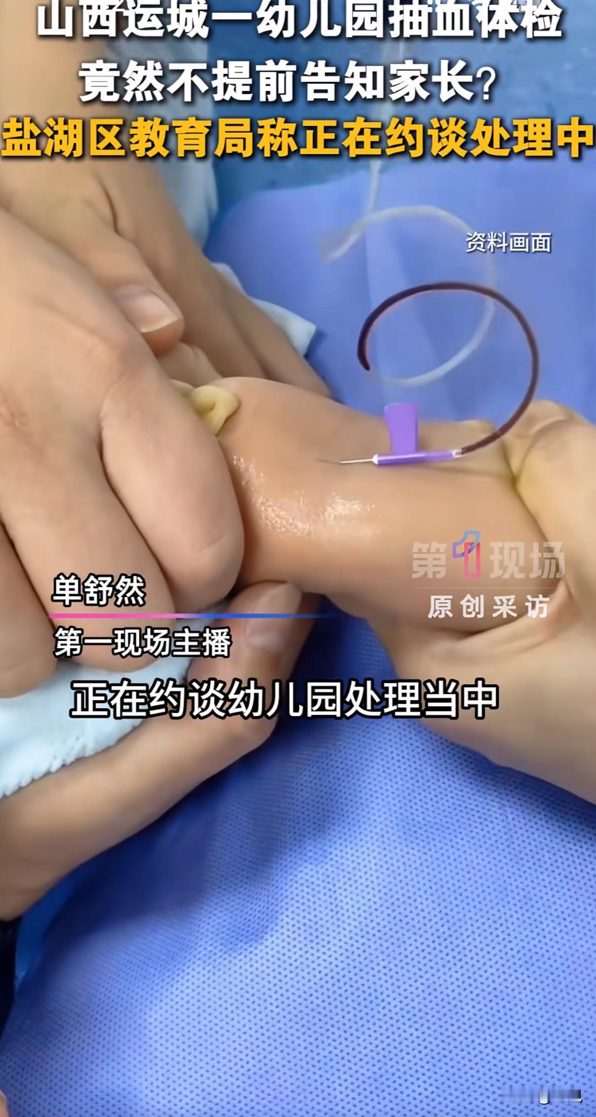 幼儿园偷偷给孩子抽血,家长看到针眼才知情! 山西运城一家幼儿园,在孩子家长完全