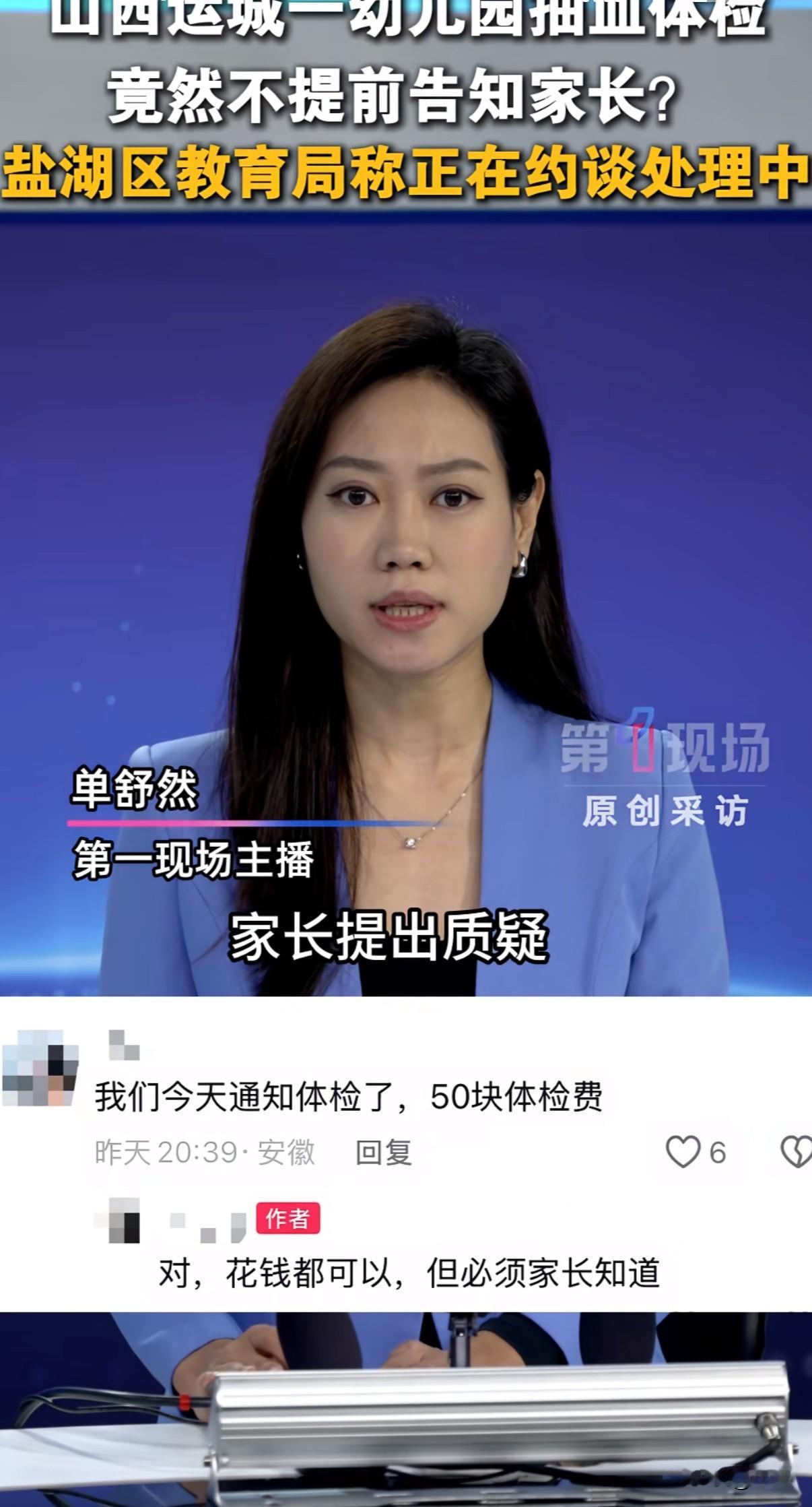 幼儿园偷偷给孩子抽血,家长看到针眼才知情! 山西运城一家幼儿园,在孩子家长完全不知情的情况下,给孩子们做了抽血体检。家长是从孩子胳膊上的针眼发现问题的。 事情发生在11月25日。孩子们放学回家,家长在帮孩子换衣服时,突然发现胳膊上有个针眼。 家长群里立即热闹起来。一位家长先发问:"今天孩子回来胳膊上有针眼,是怎么回事?" 接着好几个家长都反映同样情况。有的孩子说抽血时哭了,还有孩子说老师不让告诉家长。 幼儿园老师后来在群里解释:"今天妇幼保健院来园给孩子做了体检,采了血。" 家长追问:"为什么这么大的事不提前通知?" 老师回复:"这次是我们工作疏忽,忘记提前发通知了。" 更让人担心的是,有家长反映,孩子说老师让他们保密。一个小朋友说:"老师说了,谁告诉家长就要扣小红花。" 这件事很快传到教育局。第二天,盐湖区教育局工作人员回应,这是卫健委统一安排的常规体检,检测血常规等基础项目。 教育局承认,确实是老师工作疏忽,没有提前告知家长。目前正在约谈幼儿园处理,承诺今后会提前告知,并采取自愿原则。 类似情况在其他地方也发生过。今年6月,福州某幼儿园同样在没有通知家长的情况下给孩子抽血。园方当时的解释是,想锻炼孩子自己向家长说明情况。 教育专家指出,幼儿的记忆和表达能力有限,重要事情依靠孩子转达很不稳妥。 从法律角度看,未成年人参加抽血等医疗行为,必须获得监护人的知情同意。这是对儿童权益的基本保障。 幼儿园安排体检本是好事,但绕过家长直接操作,就让好事变成了纠纷。 家长最在意的是知情权和选择权。抽血不是普通的检查,很多孩子会害怕、哭闹,甚至留下心理阴影。 教育机构与家长之间的信任需要细心维护。一次所谓的"工作疏忽",可能就会让积累已久的信任荡然无存。 现在很多幼儿园都与医疗机构合作开展体检,这本该是促进儿童健康的好事。但再好的初衷,也要建立在尊重家长知情权的基础上。 这件事也提醒所有家长,要经常与孩子沟通在园情况,及时了解幼儿园的各项安排。 对于幼儿园来说,建立规范的家长沟通机制,比事后解释更重要。 (信息来源:第一现场)