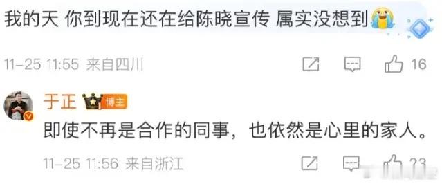 于正竟然给陈晓新剧宣传了这应该是自2019年两人提前解约,不欢而散之后的第一次破冰吧,于正当年对陈晓挺不错的,当时许凯还只是于正旗下小艺人,陈晓是公司一哥,于正走哪夸到哪,后来陈晓提前2年解约了,双方闹得还挺不愉快的,陈晓走了,许凯上位,成欢娱一哥至今,于正后来签的许凯和王星越都被说和陈晓有点像。