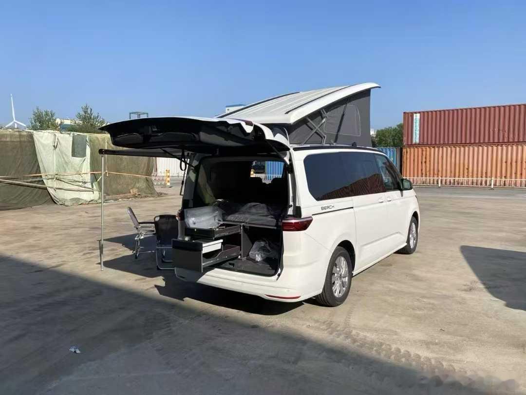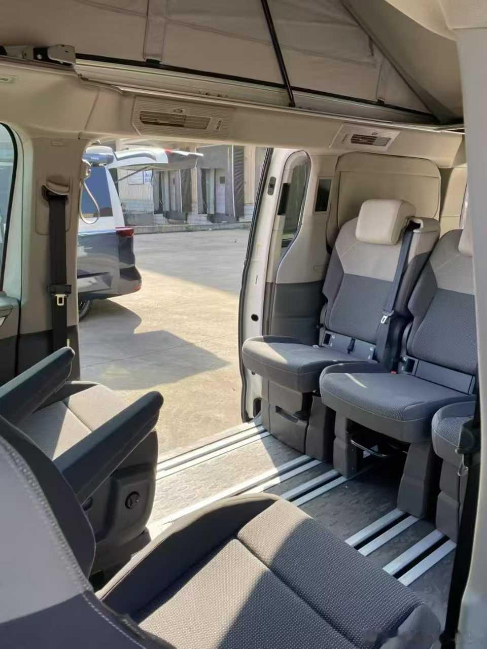 25款大众T7加州California,原厂配备燃气灶 ,做饭车里就解决了!海滩露营版 白色外观配置:升顶床,下折叠床,丝绒座椅,主副驾驶座椅可旋转,露营电池,车载逆向充电器,市电接口,驻车加热,抽拉式燃气灶,边帐,两把折叠椅子。驾驶辅助系统,倒影