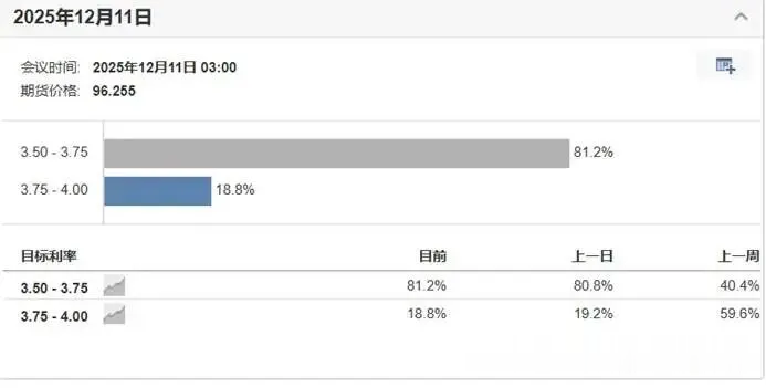 ADP最新数据显示,美国私营部门就业岗位每周平均减少1.35万个,劳动力收缩。这些因素都强化了美联储12月降息的预期,降息概率飙升至82%。
