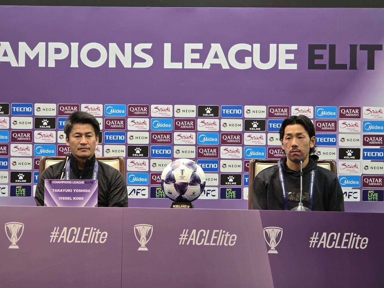 虎扑11月27日讯亚冠精英联赛东亚区小组赛第五轮,神户胜利船客场2-0战胜上海申花。赛后,神户胜利船主帅吉田孝行携进球的井手口阳介出席了新闻发布会。