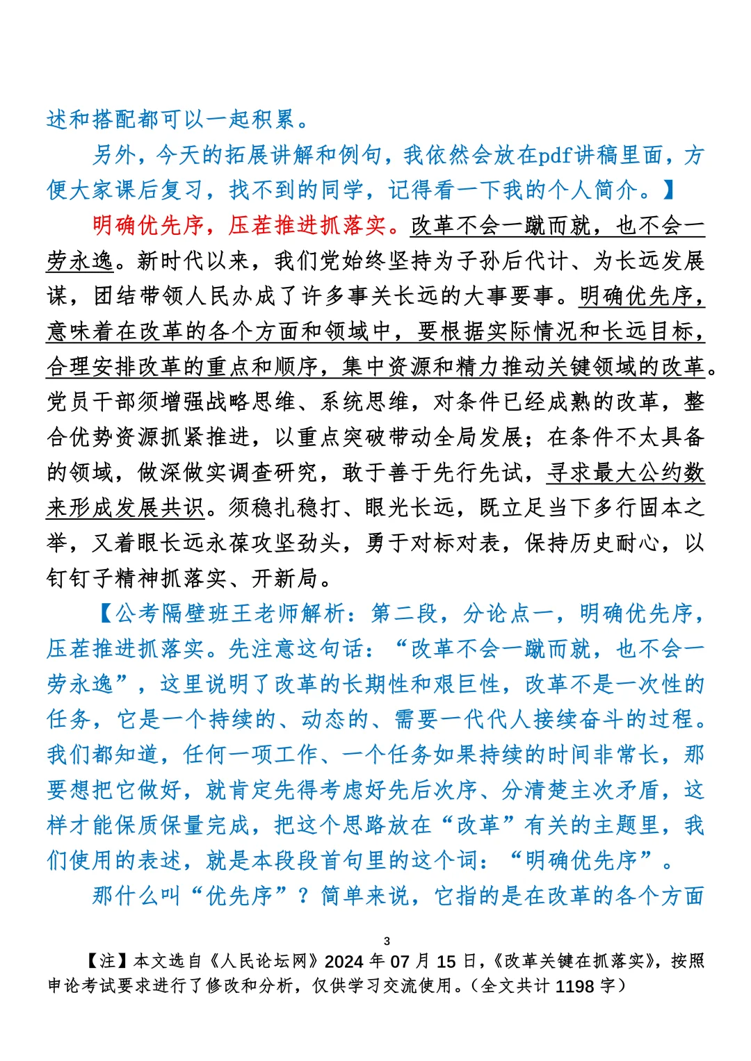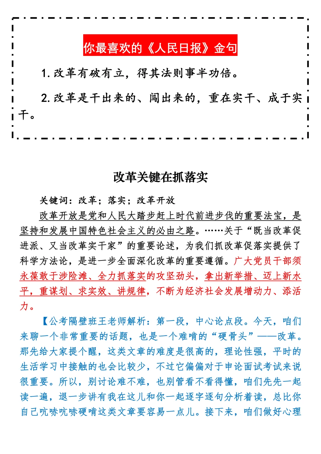 如何抄写:每日抄写文章发在“公考隔壁班王老师”账号,红色字是重点句和结构句,黑色字是正文,蓝色字是解析,大家抄写时不必抄蓝色字。建议先通读全文,做到心中有数再开始抄写,效果会更好。 关于文章:抄写文章来源于人民日报,但每篇文章我都根据申论考试要求进行了修改:一是重写或修改开头、结尾;二是统一段首句句式结构;三是调整段落字数,使文章结构更均衡;四是简化复杂长难句,使之更具可模仿性。每篇文章无论修改多少,都是基于申论考试要求,毫无对人民日报文章品评之意。(此处致敬人民日报)