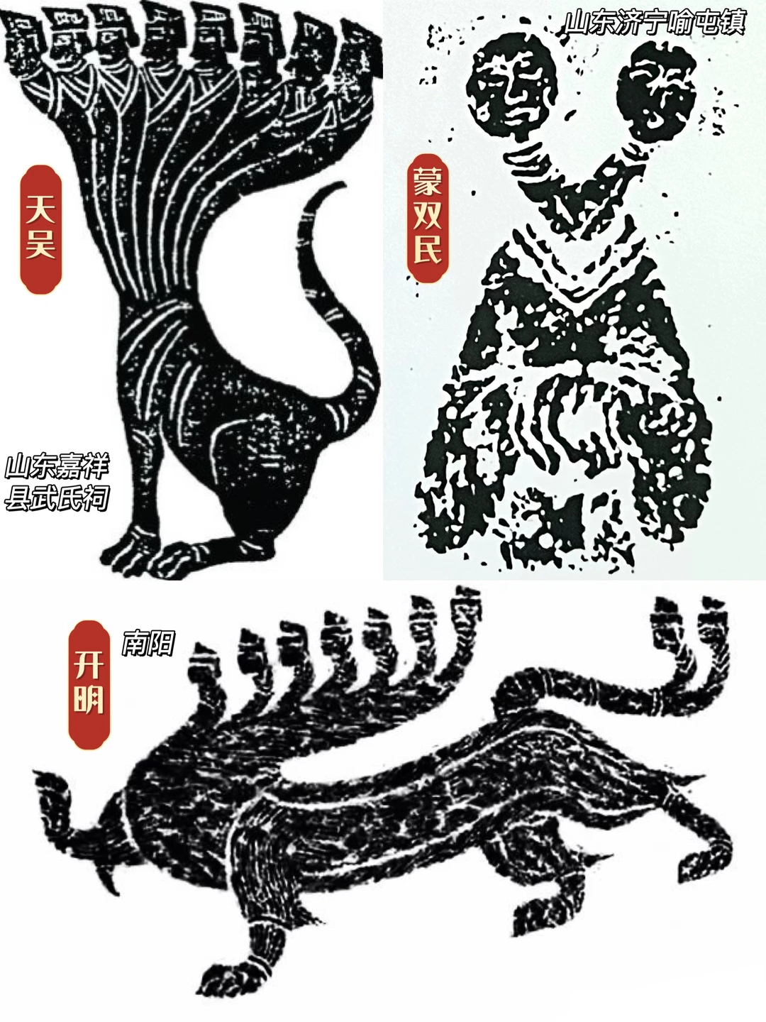 还有两个头的神人—蒙双民,从前是一对流放荒野,相拥而亡的夫妻,后来被神禽复活,才变作这幅模样。