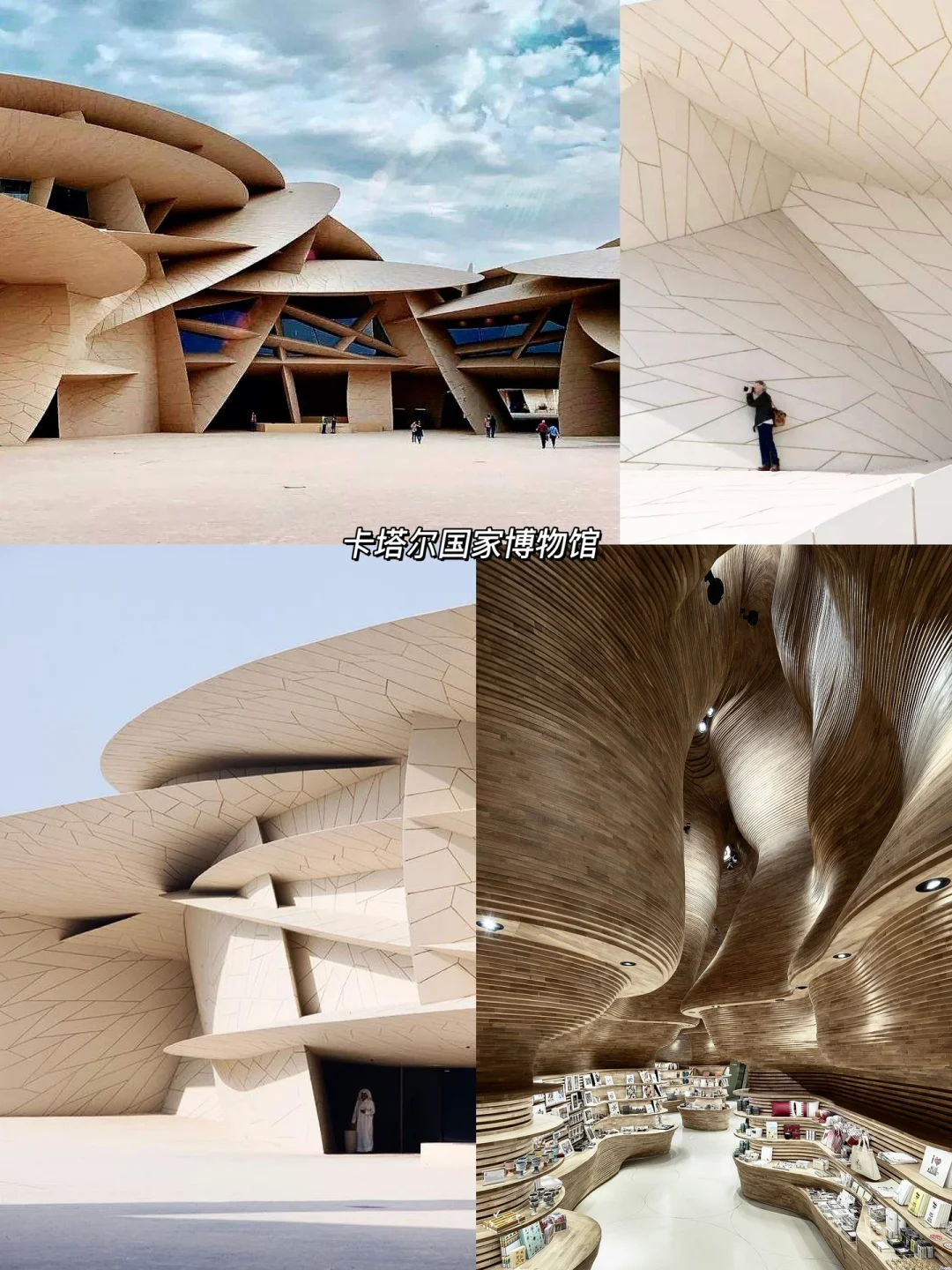 🔸在卡塔尔,还有一座不可忽视的建筑,形似美丽的沙漠玫瑰石,它便是让·努维尔设计的卡塔尔国家博物馆。