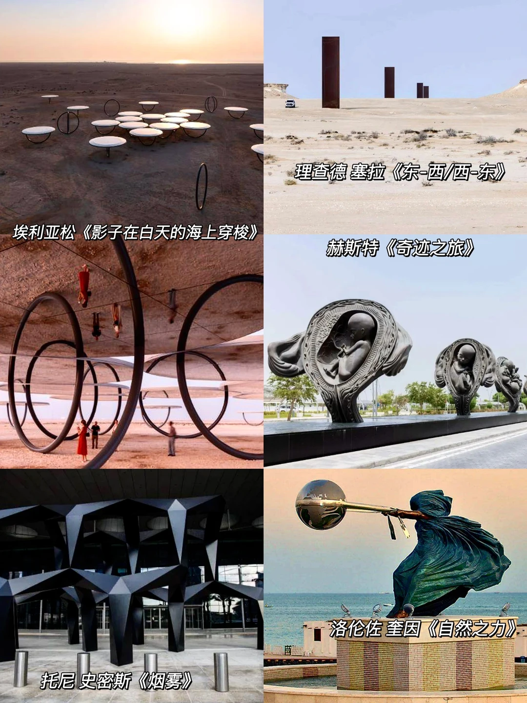 🔸卡塔尔沙漠有理查德塞拉诠释时间与孤独的《东-西/西-东》;埃利亚松的《影子在白天的海上穿梭》。