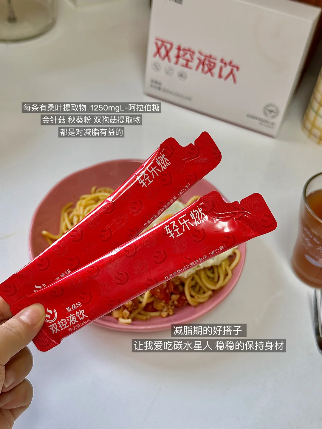 初始体重120斤 目标80 - 🥣早餐:红豆贝果➕黑咖啡➕黄桃 🥣午餐:番茄肉酱意面➕双控液饮 🥣晚餐:米粉 喝水2500ml 运动 瘦背两组 - 又几天没更了,手头事情都忙好了,接下来可以保持日更了[派对R] 像我一忙起来吃饭都特能吃了,吃的多还能保持住体重,我就做了一件事 餐前喝一条轻乐燃双控液饮,它里面的成分是能帮助我们❌碳水 糖 吸收以及补充膳食纤维的,吃点热量高的也没关系的,一开始我认为是智商税 这段我就试着餐前喝一条 ,反正没让我长体重,和我一样爱吃又怕月半的可以去试试~
