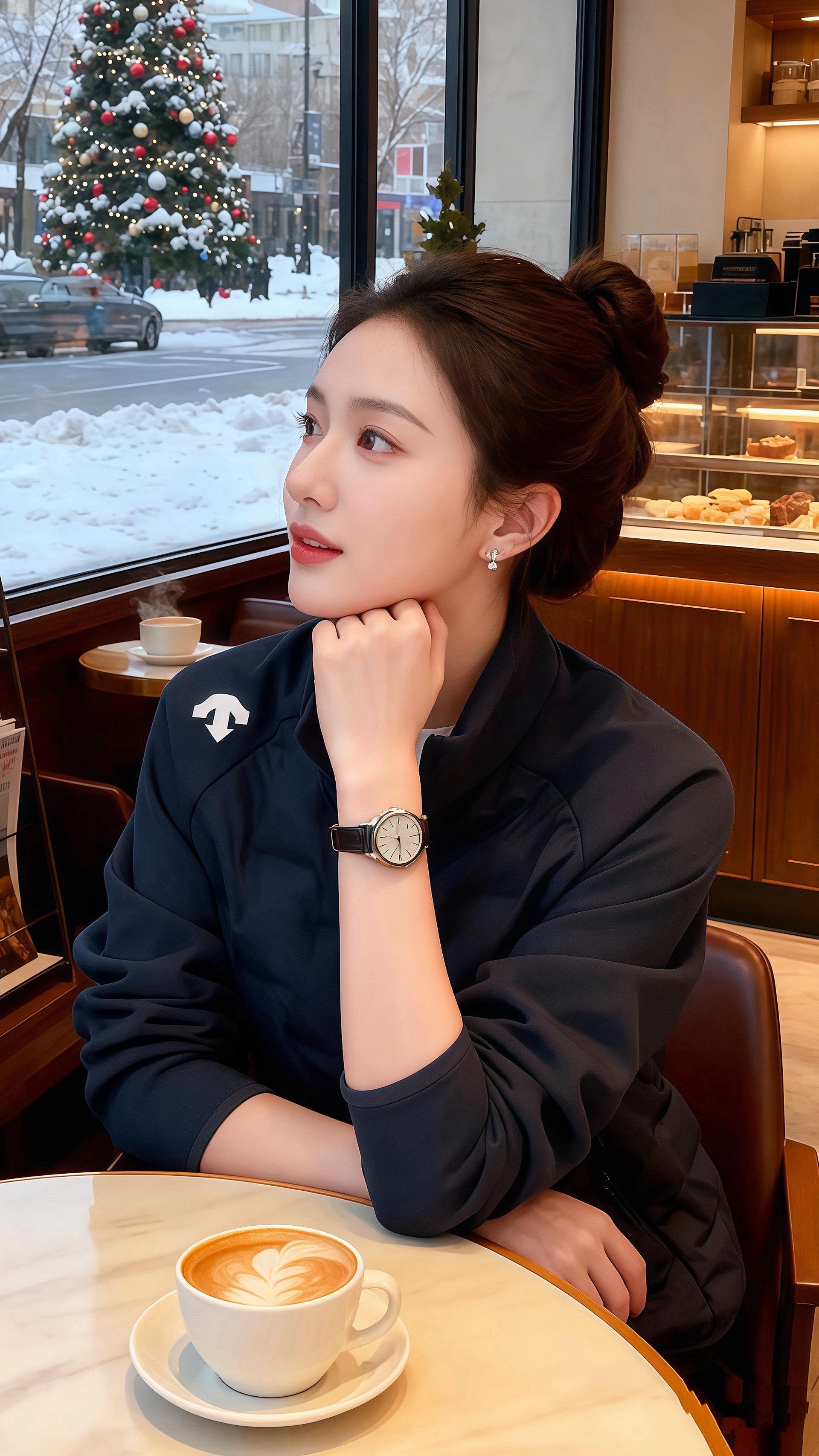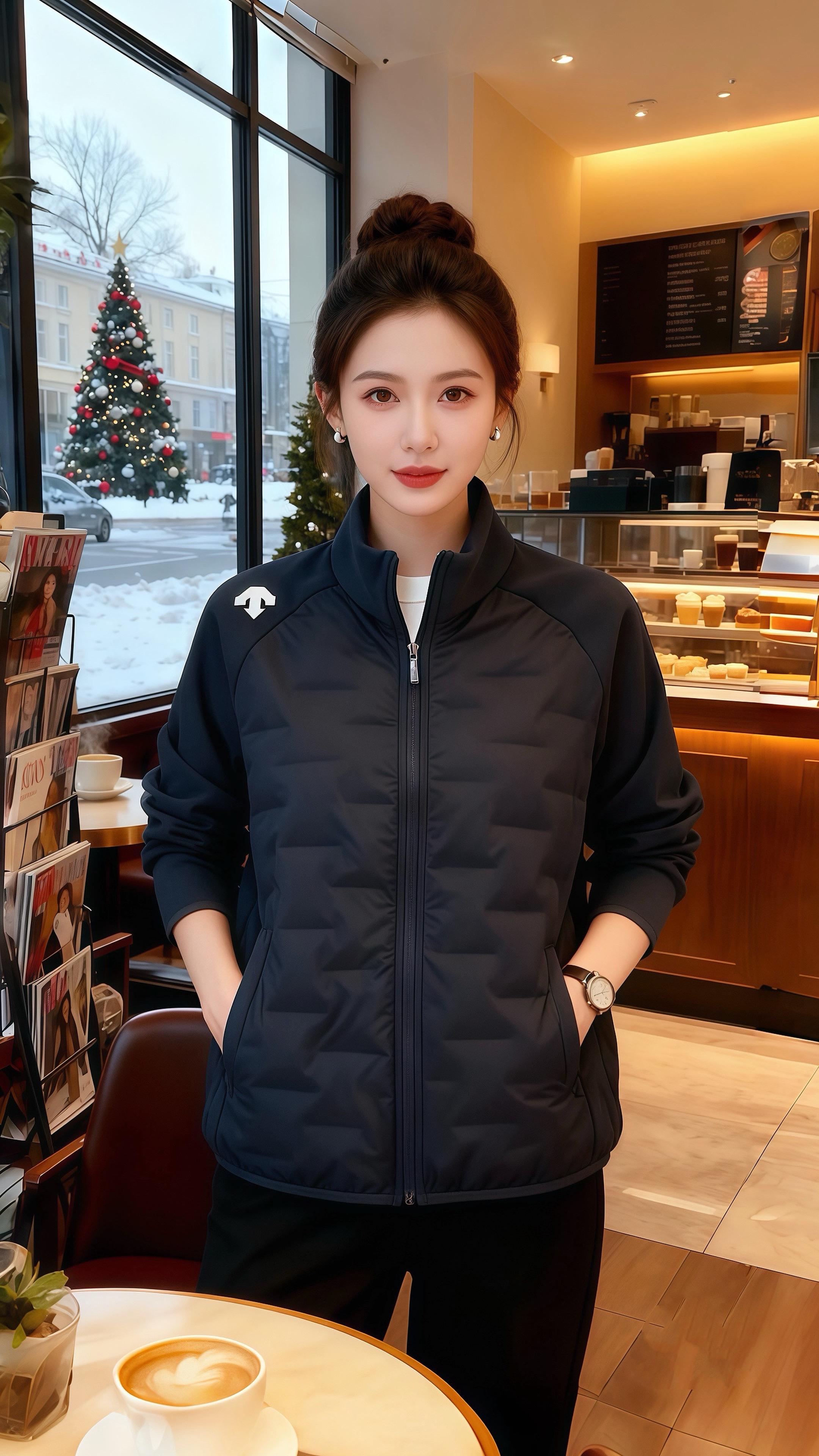 雪裹着圣诞松的香气漫进咖啡馆时,周亦珩看见林知意靠在甜品柜旁——藏青外套的绗缝顺着肩线收得软和,袖口松松搭在小臂,露出的手表皮带,是沉色里恰好的温调。 “等你点单,”他把热拿铁递过去,指尖蹭过她外套的拉链,“这一身比上次多了点随性,像把冬风裹成了软的。” 她抬眼笑时,外套肩章的小标在暖光里闪了下,内搭的白边从领口露出来,是沉调里的浅缀。周亦珩瞥见她裤脚的线条,又补了句:“连裤子都和外套衬得刚好,你总把‘舒服’穿得让人挪不开眼。” 后来他总想起这天:她捧着咖啡站在甜品柜旁,藏青外套裹着软意,像把冬夜的暖都