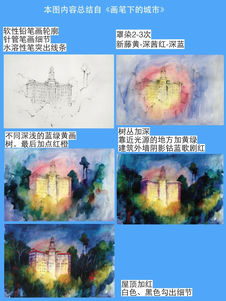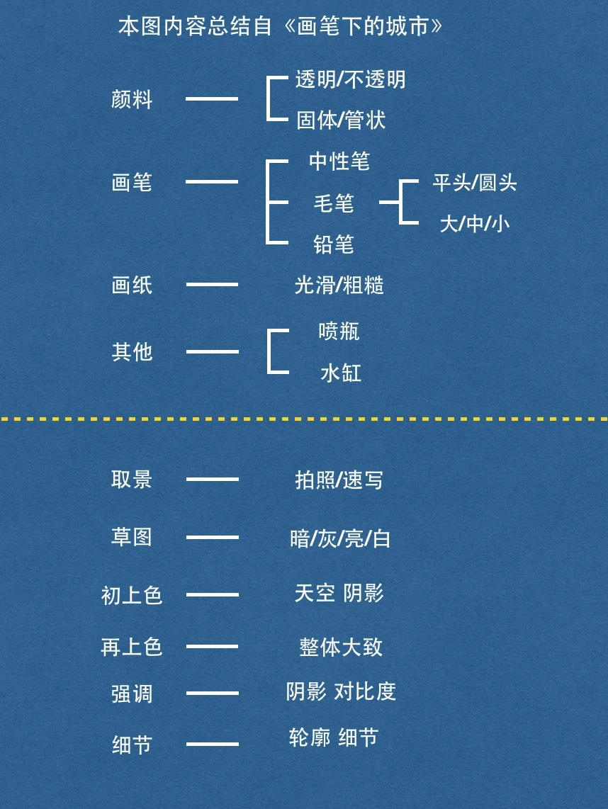 📚关于如何选工具、画草图、上色,可以参考一本入门读物—《画笔下的城市—建筑风景手绘161法则》,个人感觉对初学者很友好。
