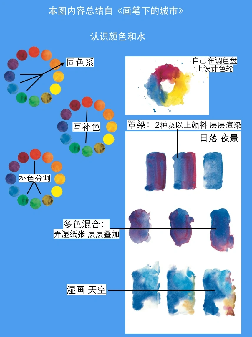 🎨你可以把调色盘中的颜色都画一遍,也可以把纸涂湿,看每个颜色的晕染效果,还可以叠加色彩,观察变化。总之,玩儿法千变万化,但要有一双善于观察的眼睛。