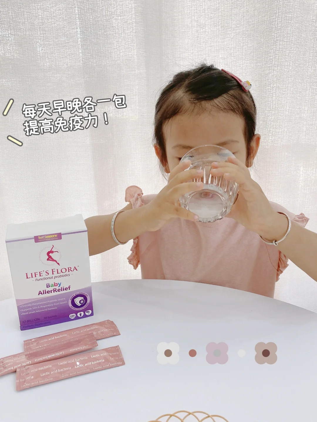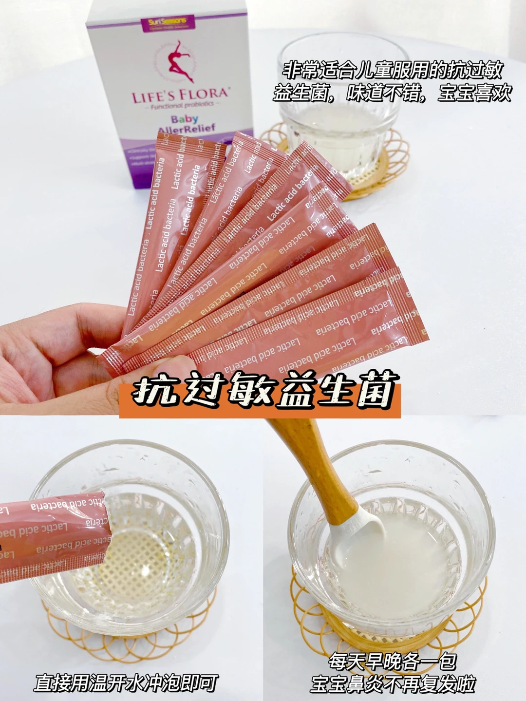 这款益生菌是其他宝妈推荐给我的,因为洗鼻器只能清理滋润鼻腔,但每到换季时赞赞还是会过敏,这款益生菌是用来给她调理过敏体质的。可以用温水冲开直接喝,也可以冲泡在奶粉🍼种一起,赞赞是每天早晚各吃一包,已经吃了半年左右了,自从用洗鼻器+益生菌赞赞的鼻炎就再也没有复发。