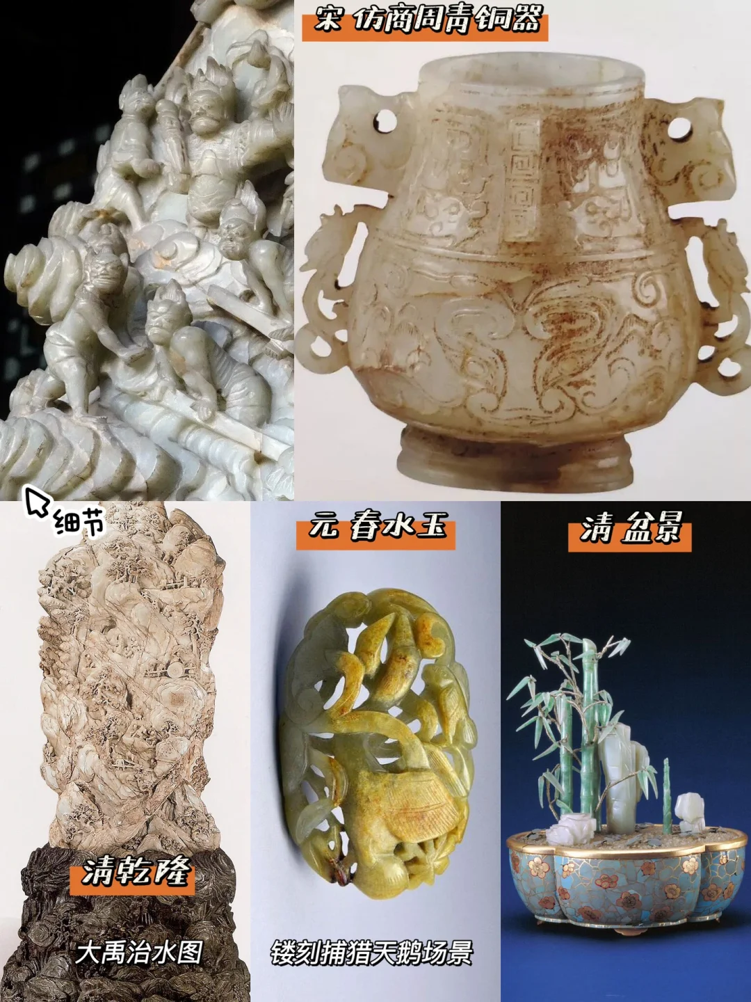 🌊清乾隆年间,大禹治水等大型玉雕开始兴盛,翡翠珠宝等小型盆景世代相传。