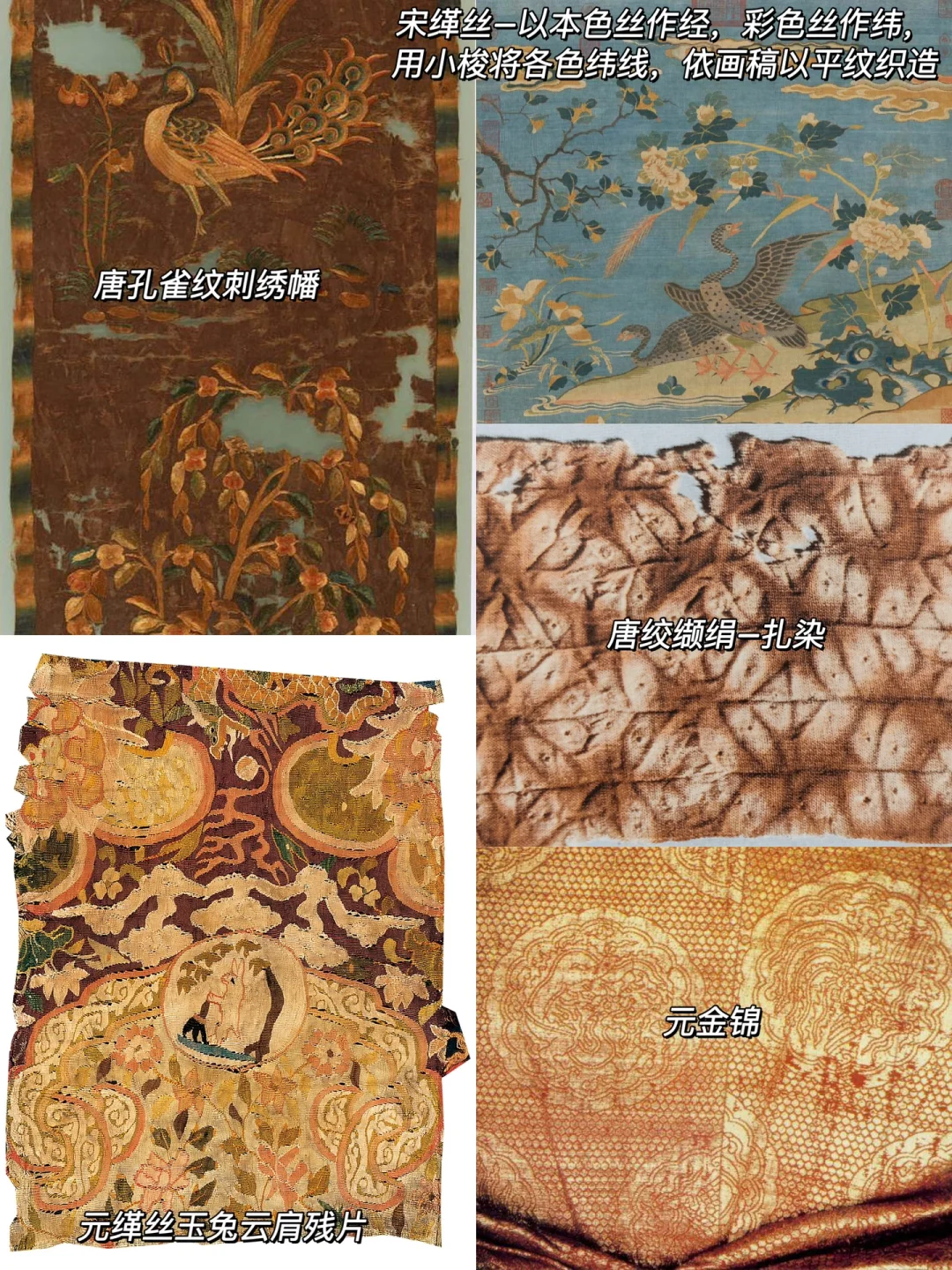 🖼宋代出现缂丝,能临摹书画,元代则以金锦和缎主打细密繁华。
