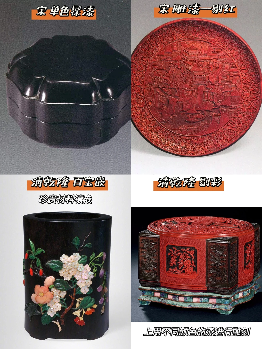 🐚三国有戗金、犀皮等工艺,而两宋又有雕漆、薄螺钿等技法,同时,素髹器以简洁外形成为主流。