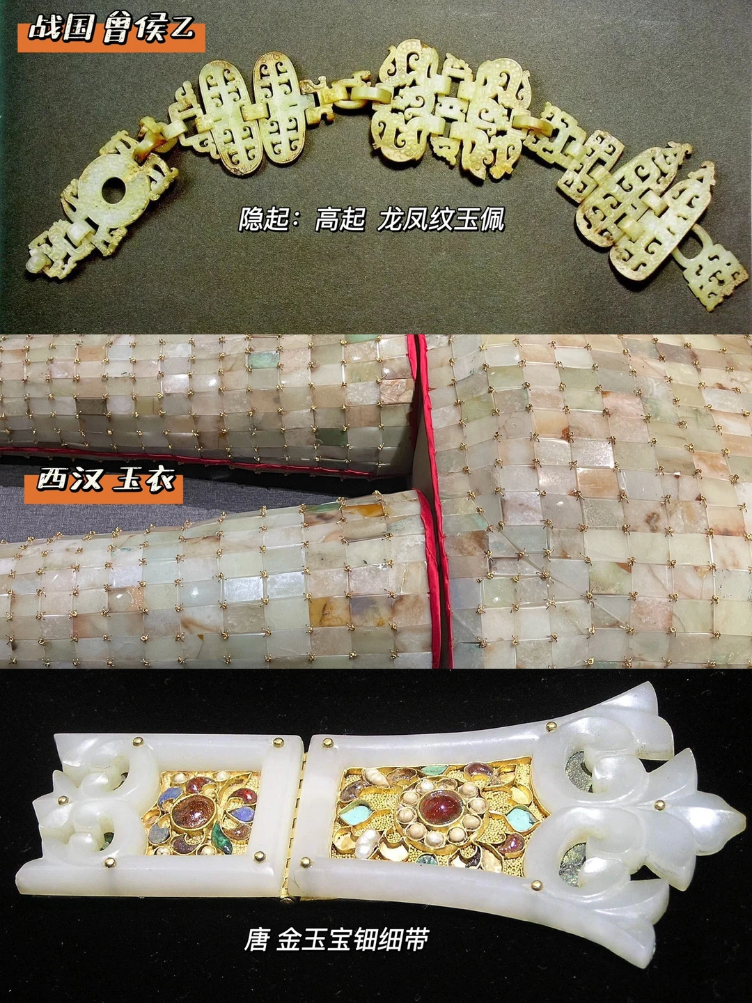 🎋西周有了“君子比德于玉”的概念,携带玉佩成为常态,而战国,玉饰多用线刻、隐起和镂空,曾侯乙墓为其中代表。