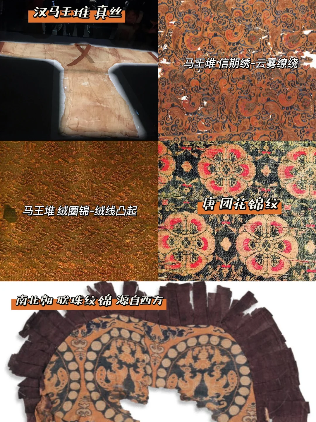🎀西汉丝绸有了质的飞跃,纱薄如蝉翼,绒圈锦立体有型,染色、织纹、印花、刺绣、粘羽等装饰纷繁,马王堆便是代表。