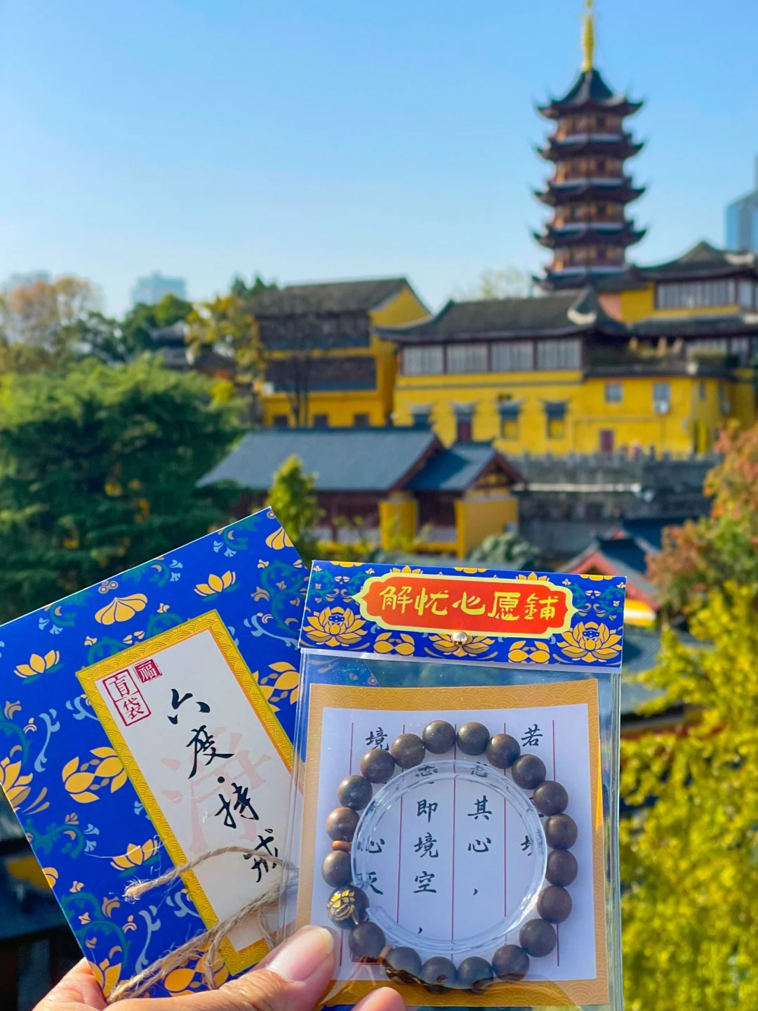 南京鸡鸣寺文创真的好会啊! 昨天去鸡鸣寺赏秋 看到有手串盲盒!! 拆的正好是我想要的款!哈哈哈 现在还有🆓镂空鸡鸣寺书签和手机贴纸 [打卡R]古鸡鸣寺 ⏰:7:00—17:30 🎫:门票10r 🚇:地铁3号线鸡鸣寺站