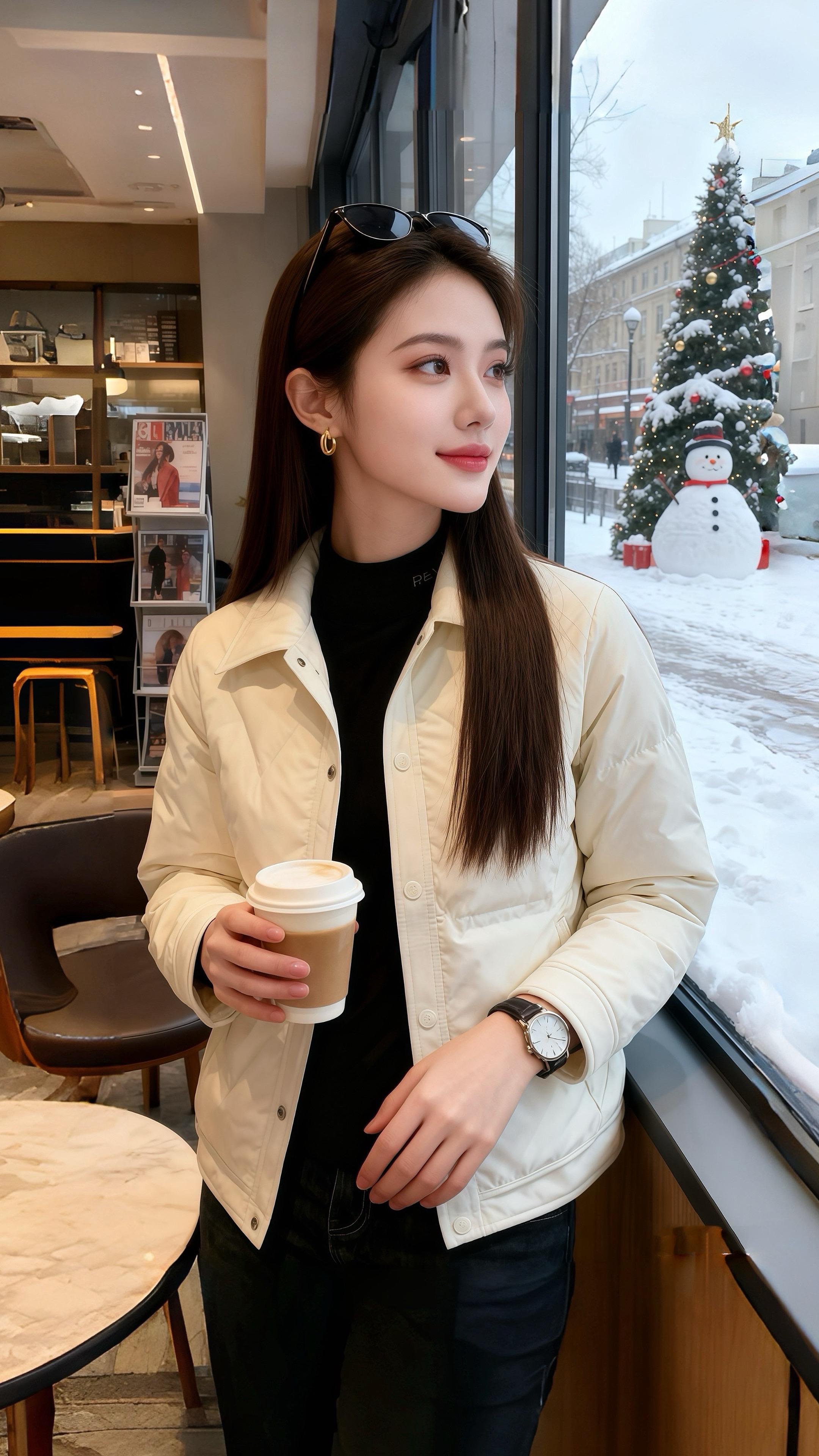 后来她去杂志架取刊,衫角扫过我的杯沿,暖香裹着咖啡味漫开。我盯着她衫上的菱格,忽然觉得这冬雪天,连冷都成了衬她的背景。