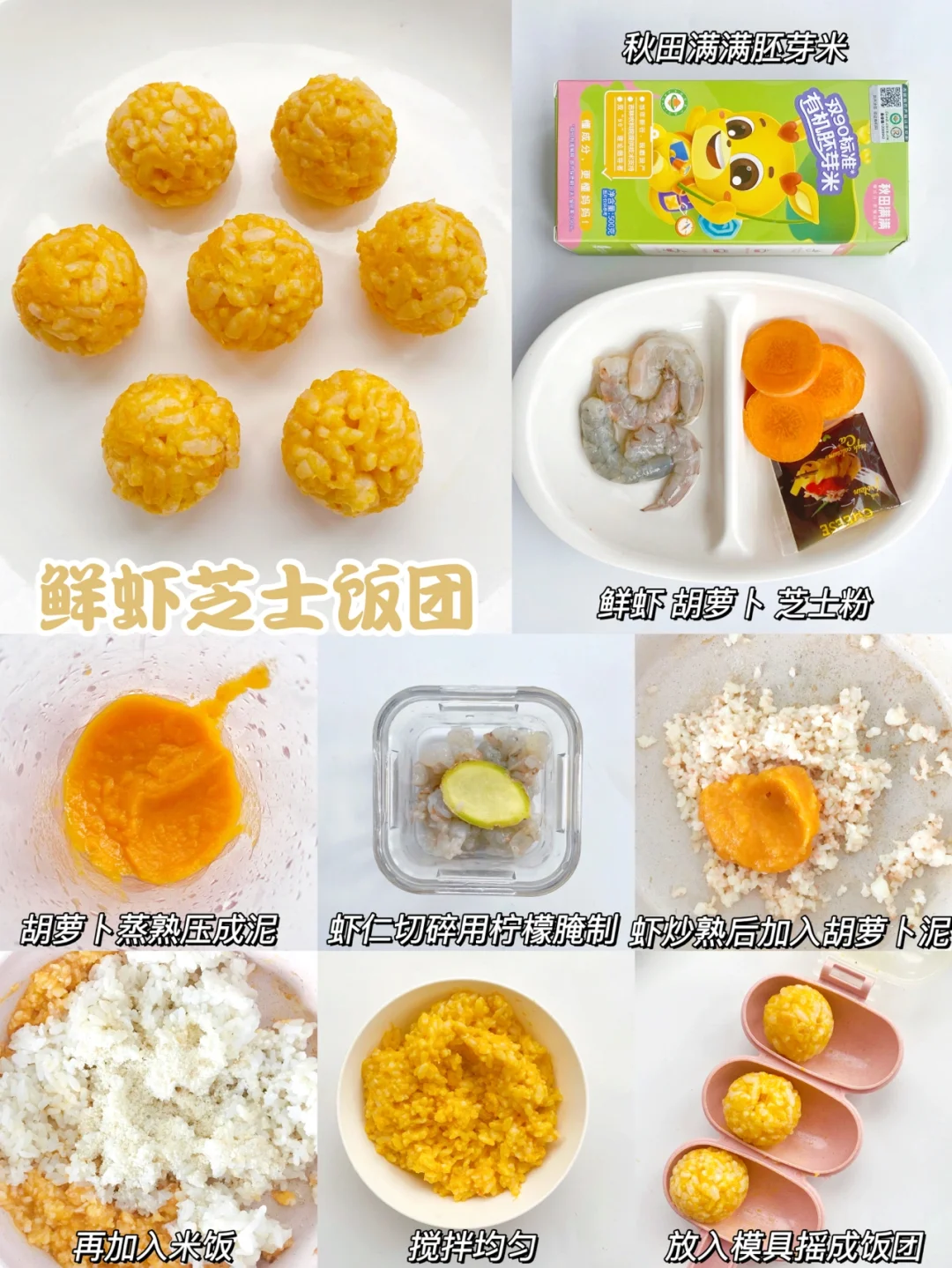 鲜虾、胡萝卜、芝士粉、秋田满满胚芽米