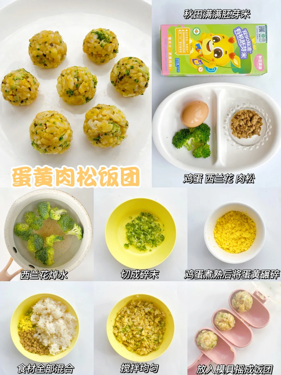 西蓝花、鸡蛋、肉松、秋田满满胚芽米