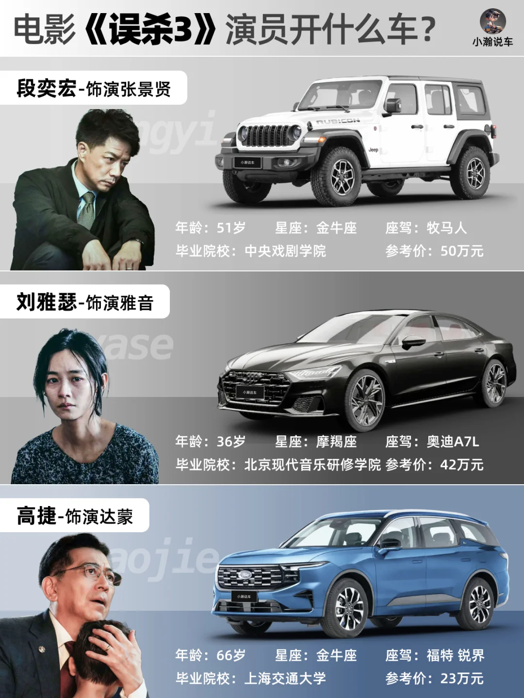 本以为《误杀 3》只是简单的绑架案,没想到背后藏着这么惊人的黑暗产业链。“有的孩子是孩子,有的孩子是商品”像是一记重锤,敲打着我们对社会阴暗角落的认知警钟。强烈推荐还没去看的宝子们去看!不过在去之前,先和小瀚一起看看主演们的座驾吧!