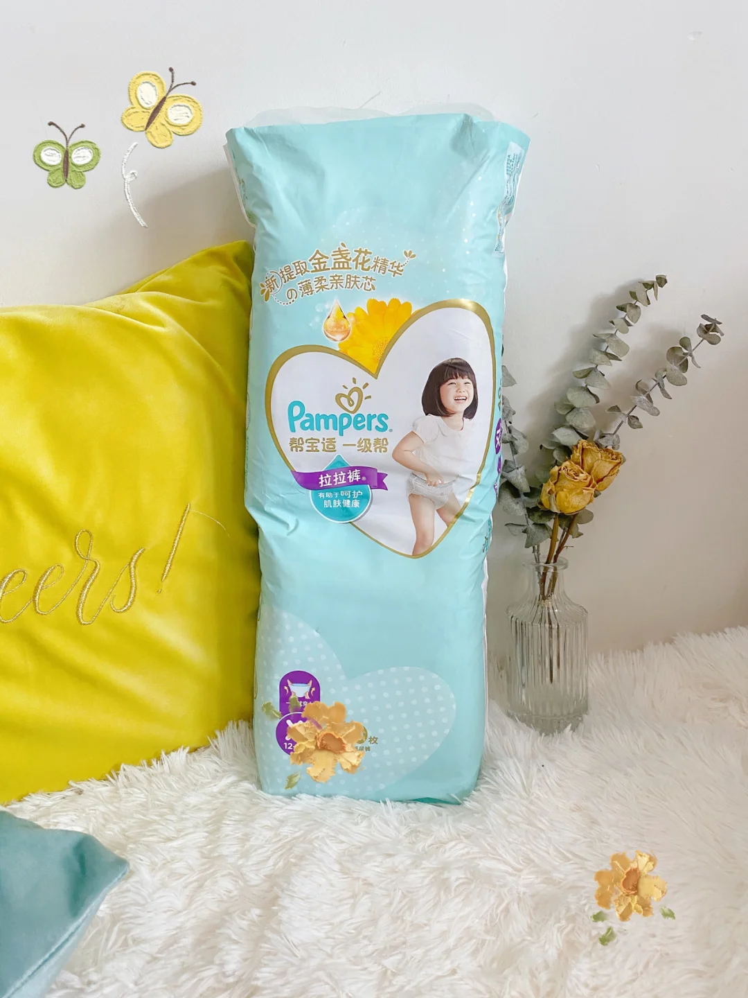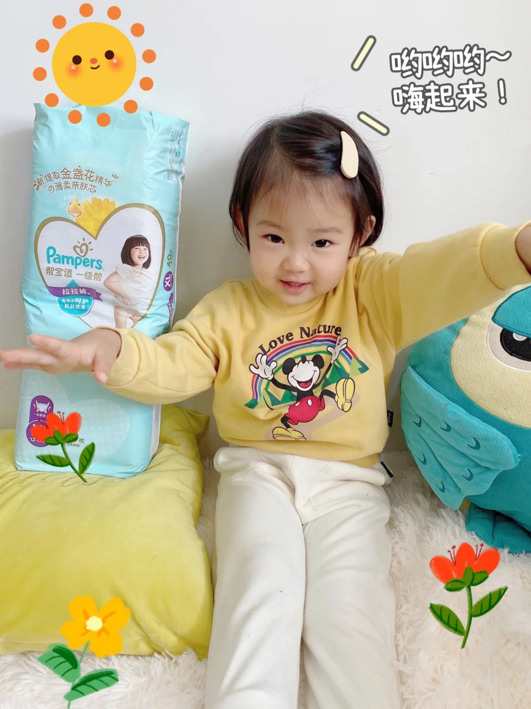 赞赞现在用的拉拉裤是帮宝适拉拉裤。赞赞从小就很好动,大了之后更是每天蹦蹦跳跳一刻不停歇。帮宝适拉拉裤腰围很贴身,宝宝怎么动也不会漏尿,吸的满满的,也不反渗,小屁屁始终干爽。帮宝适拉拉裤内表层添加了金盏花精华,妈妈们对金盏花应该很熟悉了,很多护肤品中也添加,舒缓镇定,温和不刺激。金盏花精华可以有效降低红屁屁的发生几率哦。