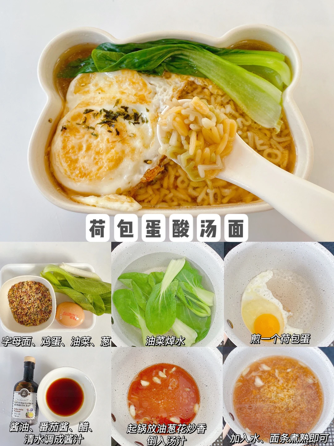 这个是五星推荐的一款,根据大人版的荷包蛋酸汤面改良的,我用的醋是宝宝葡萄醋,也可以直接用酱油番茄酱调味。酸甜开胃,汤汁都可以喝光光。