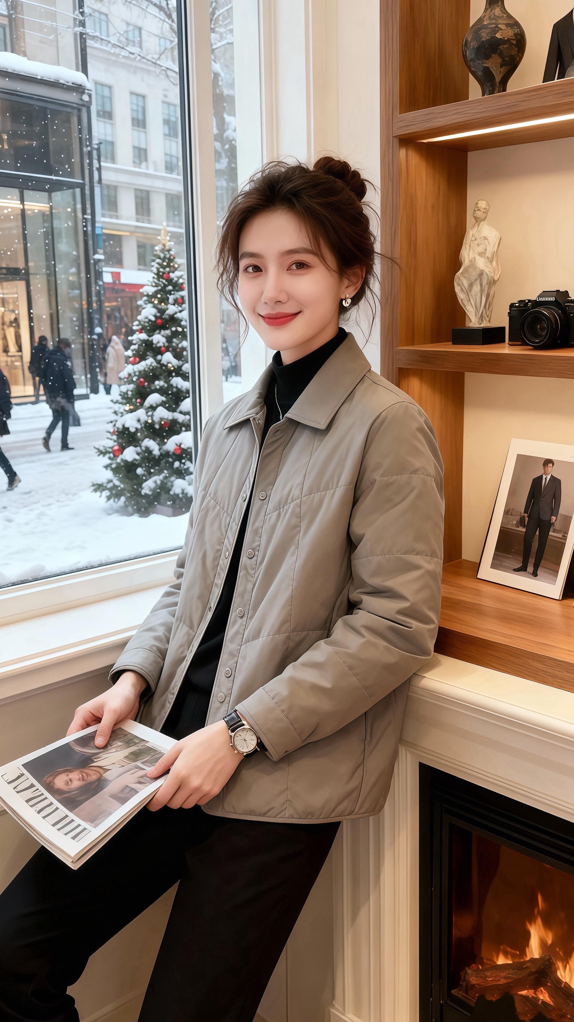 雪落满街那天,许妍捧着热咖啡靠在窗边,浅灰翻领棉服衬得她脖颈线条像落雪般柔和。皓明推开门时,目光先黏在她身上——“这件比橱窗里挂着的样衣好看。”