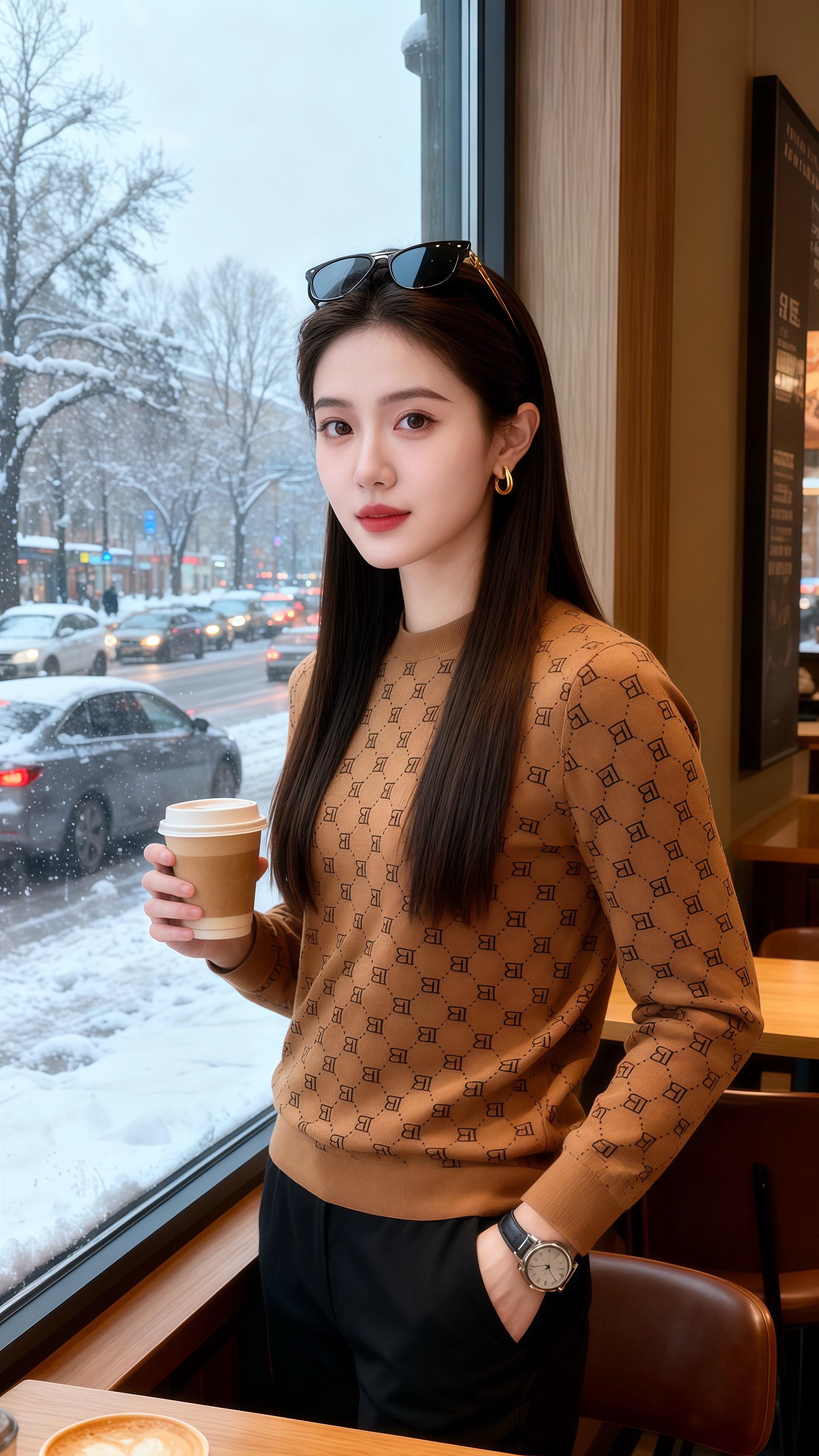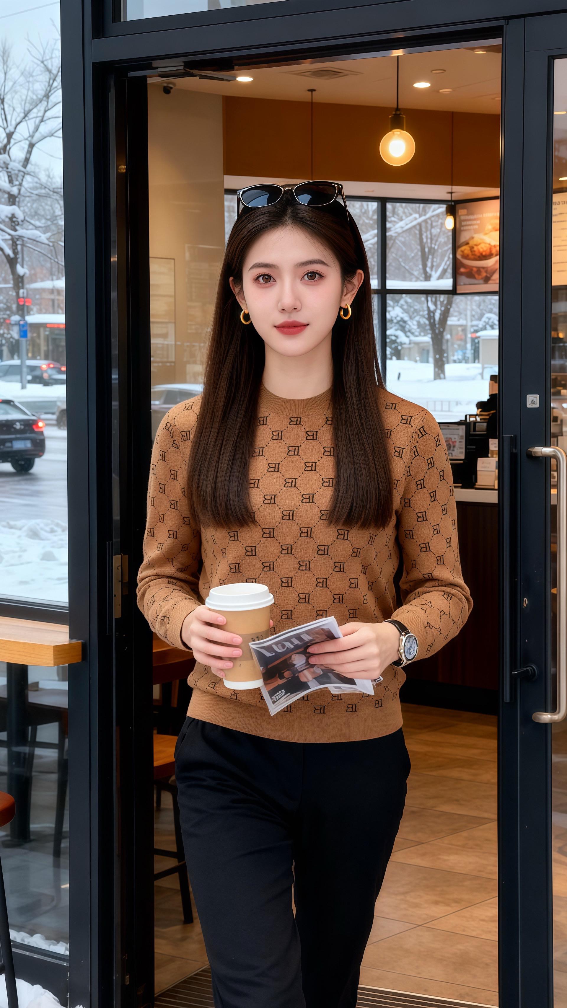 米色风衣搭配棕色裙装,简直是优雅职场风的神来之笔!就像米白短款大衣配深棕半裙,短