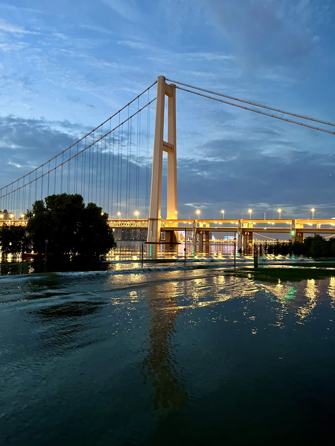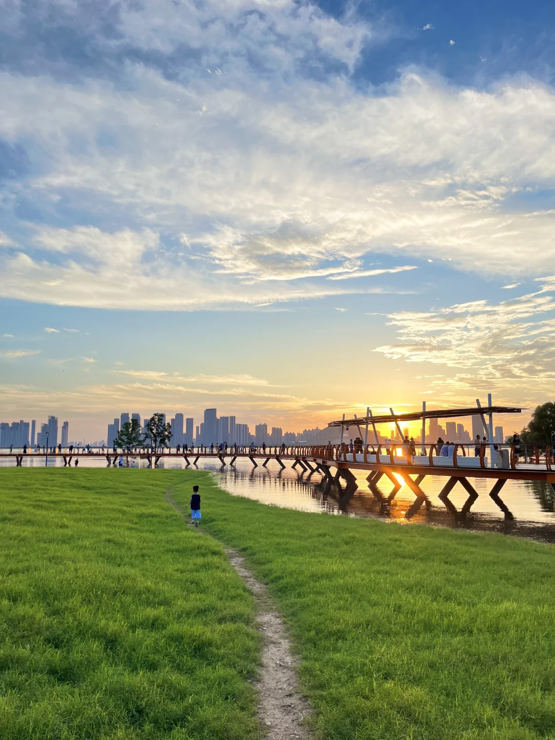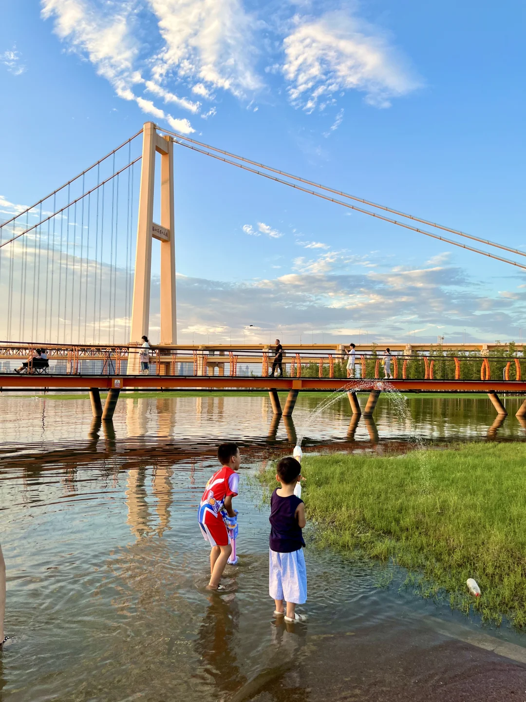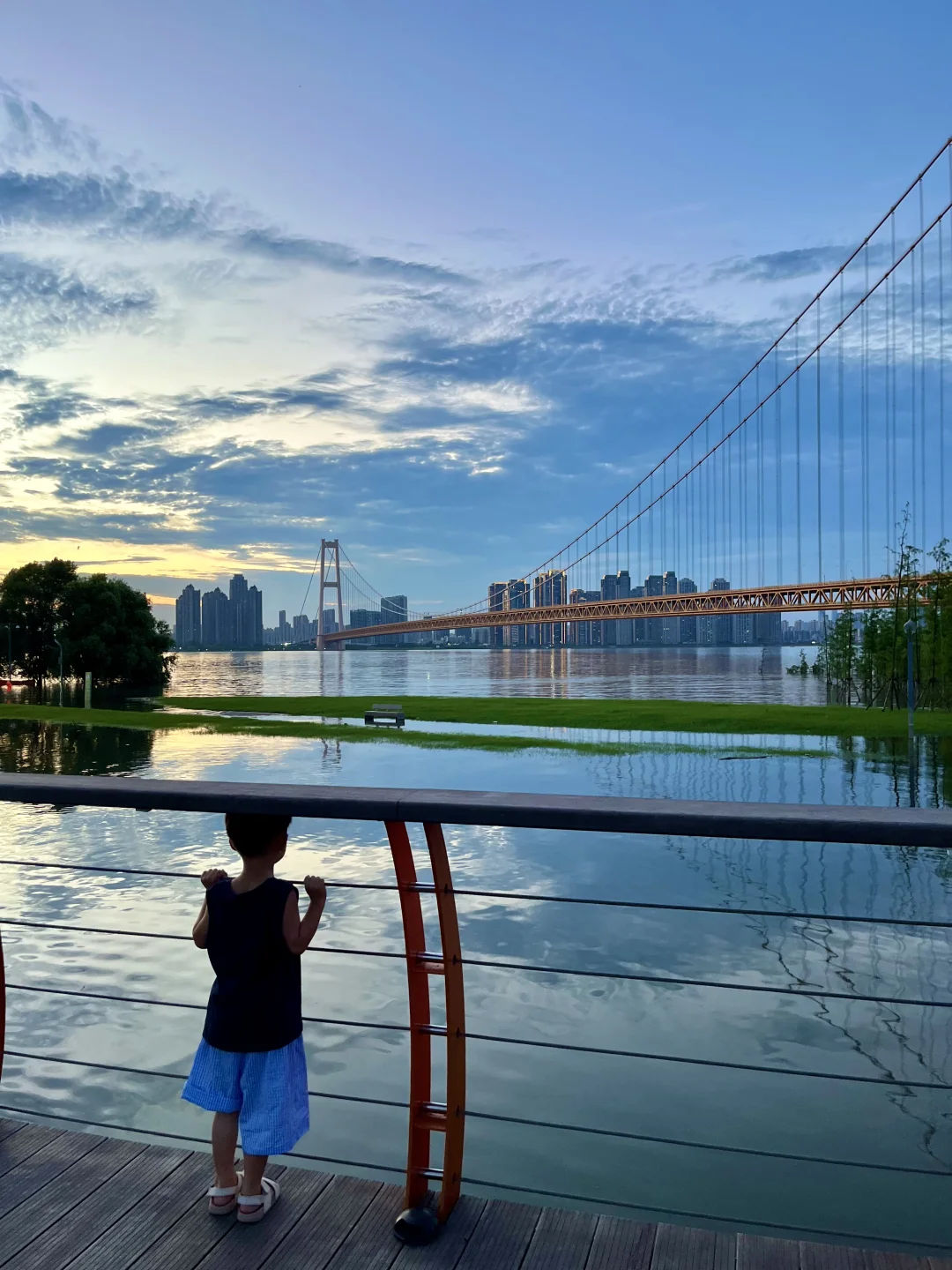 不允许还有人不知道这个玩水地💦 最近武汉的日落真的杀疯了‼️ 在这玩水有种小时候快乐🐟 因为前段时间武汉下大雨,这里变成了“海上栈道” 小朋友带上水枪、捞网,鱼超多🎣 建议六点左右到,捞鱼玩水等着看落日和晚霞 -