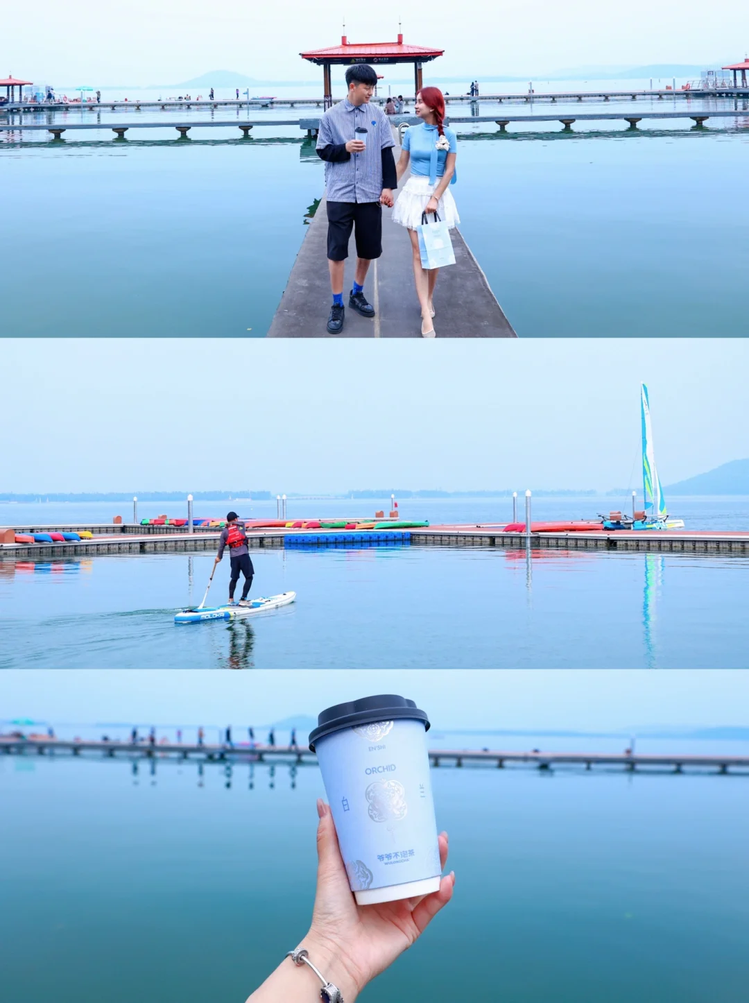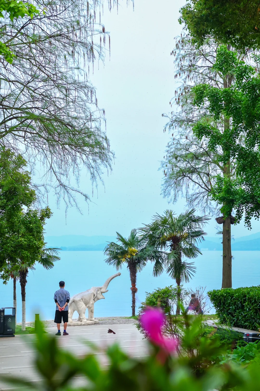 去年走过武汉好玩地100站‼️今年继续 第222站:来东湖听涛景区看海🌊 武汉的凌波门拆了后我发现东湖这里更美‼️ 天气好的时候很像洱海🌊我是阴天☁️拍摄都很美 五一武汉的朋友还去什么洱海,在武汉带你看海 栈道+古风亭子氛围感直接拉满 来武汉的小伙伴也别错过武汉的东湖 这里小众!人少!还能钓鱼🎣野餐🧺 还免费‼️‼️‼️ - 📍定位:武汉东湖听涛景区 🚗自驾导航:东湖听涛景区,院内可停车🅿️ 🚇地铁:8号线到省博湖北日报站下车,步行1.4km即可达‼️ - 💙游玩攻略: ✅园区里面有停车场,可以开进去!少走很多路 ✅到达湖边往右边走,沿路可以看到大象🐘雕塑,打卡的机位一路上都能看到‼️ ✅ 去东湖带上了武汉人自己的茶饮,爷爷不泡茶的宝藏新品白兰玉露🌿意外的和栈道看海很配,这个淡蓝色真的很出片 💙淡蓝色的杯身+烫银民族风图案,有种东方清冷美感,扫街citywalk、露营野餐带着他都很出片 💙白兰玉露(恩施宝藏茶-恩施玉露;白兰中上等佳品”建兰“)×牛奶,清甜牛奶融合后丝滑入口,花香+茶香,好似置身兰香馥郁的雨后茶园,清爽而鲜美,饮毕口中暗香萦绕‼️ 💙一起期待4月27日白兰玉露上新,另外打探到这次还有手腕包、笔搁、香薰惊喜周边哦‼️ - 上篇发的绝美绣球也在这里,大家可以一起打卡‼️ -