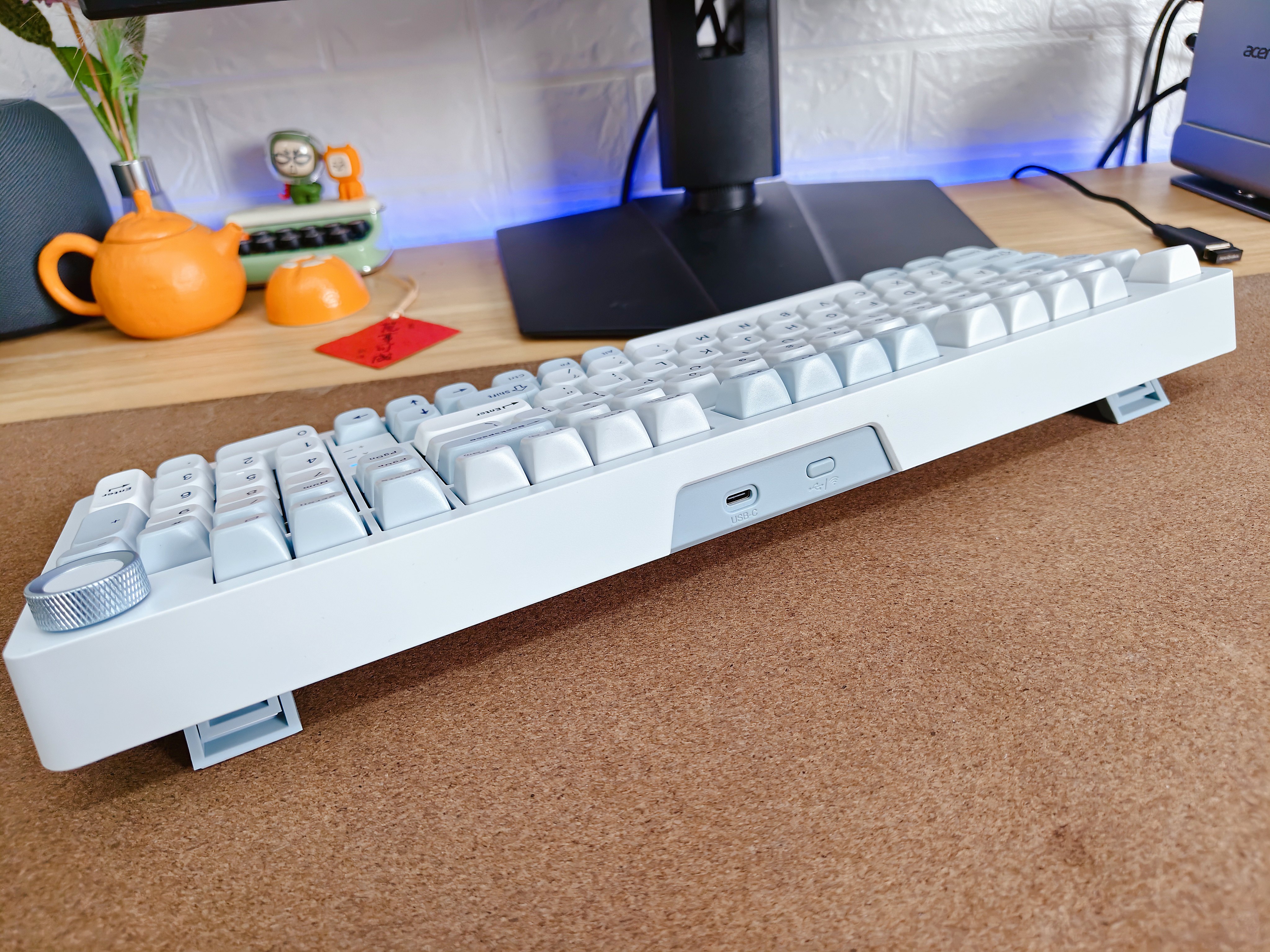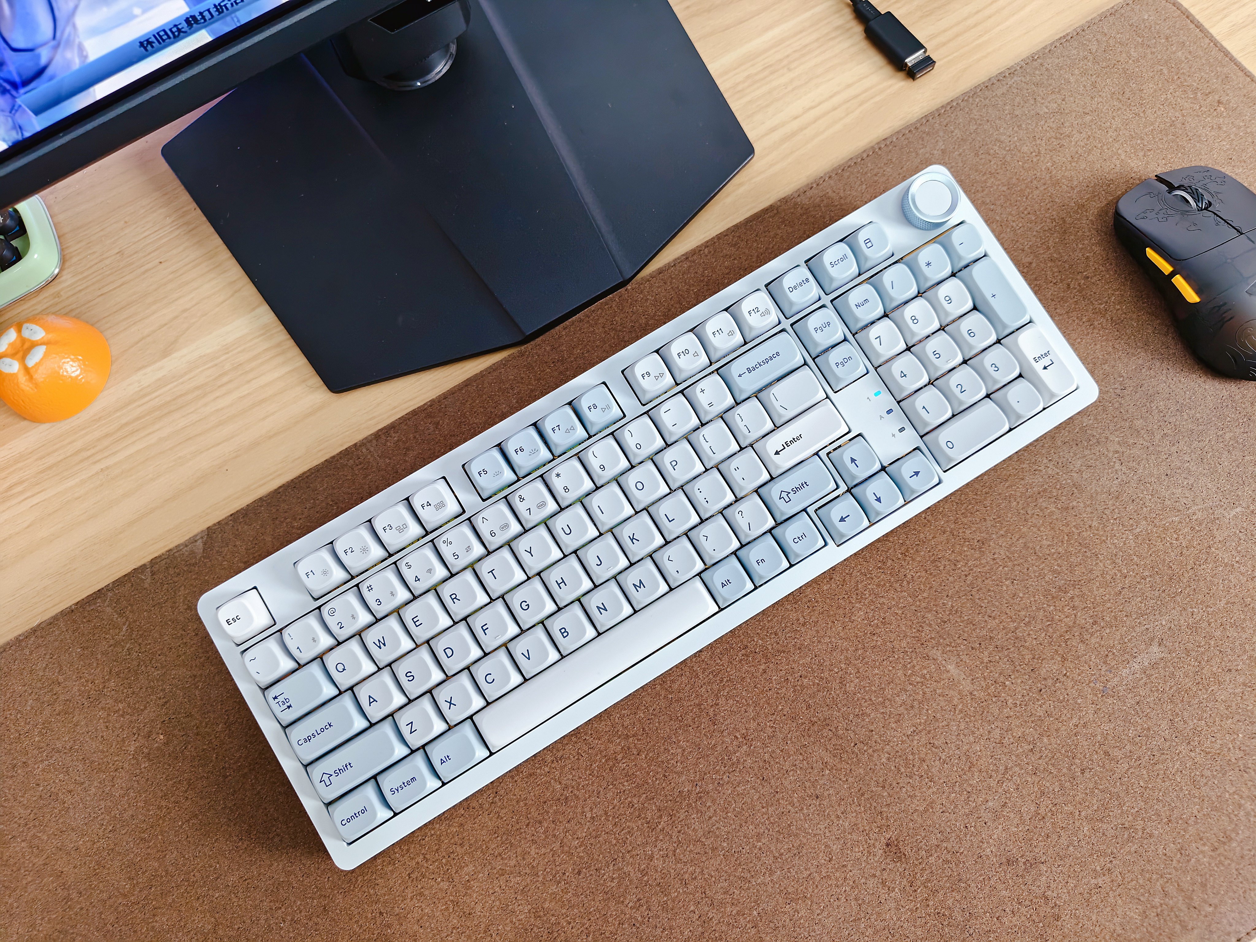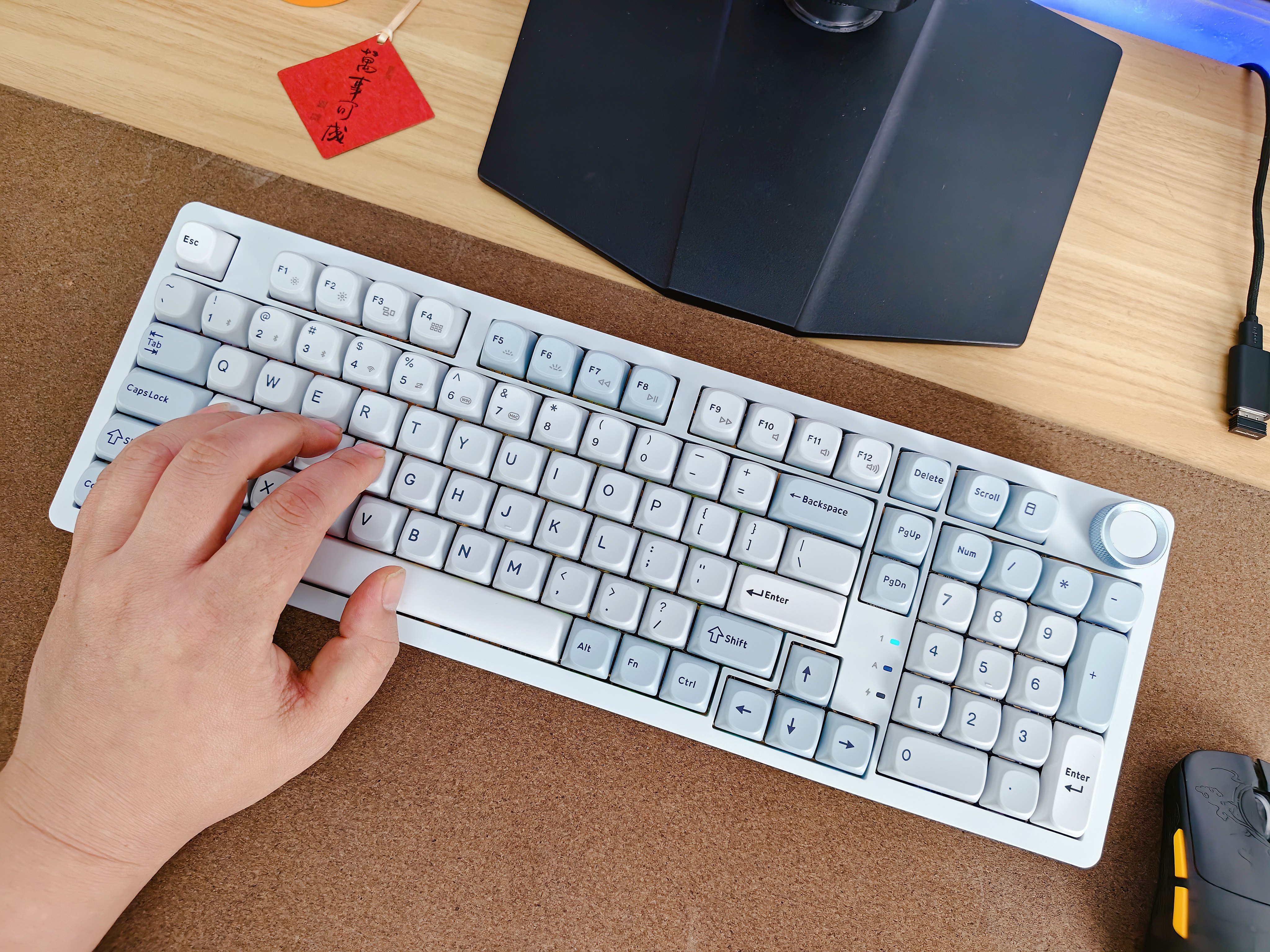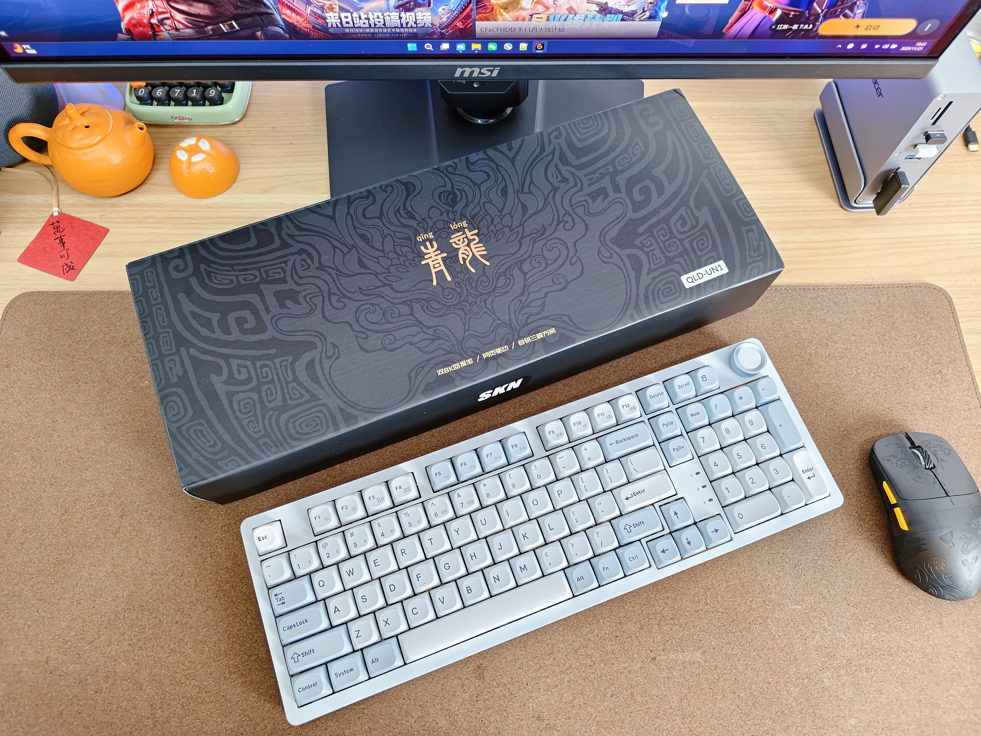 作为一名游戏和办公双修的桌搭爱好者,你在键盘上花了多少钱?是不是总觉得“贵=好用”,结果体验反而越来越不尽如人意? 我也曾不断升级、更换外设,第一次尝试了SKN青龙4.0 Ultra“凝”键盘,没想到,给了我一步到的选择,爱上了这颜值与手感,再也不需要过多的折腾了。   SKN青龙4.0 Ultra的外观上很简洁,98键布局+多媒体旋钮+指示灯,使用状态一目了然。浅灰与青色的拼色外壳,搭配青灰双色键帽,清新耐看。金属旋钮质感十足,整体颜值在线。   手感方面,搭载了定制的黑曜轴,全键PBT键帽耐磨抗油,敲击声音低沉稳定,手感一致性强。加上六层Gasket Pro结构与四层消音填充,让每一次按压都软弹舒适,杂音极少。   性能上,自研Hos轴座兼容三脚/五脚轴体,支持全键热插拔,对DIY人群很友好。惊喜的还是双8K回报率,在有线和2.4G模式下延迟极低,操作跟手流畅,全键无冲设计在游戏中表现尤为出色,切枪、急停、转身一气呵成。   续航方面,8000mAh电池配合自研ZMK低功耗方案,一次充电可续航数月,轻松告别电量焦虑。三模连接、双系统切换、网页驱动设置,功能全面且实用。   无论是游戏中的精准操作,还是办公码字时的舒适手感,SKN青龙4.0“凝”都能兼顾。颜值高、手感稳、价格香——这,才是真正让人爱不释手的那把键盘。