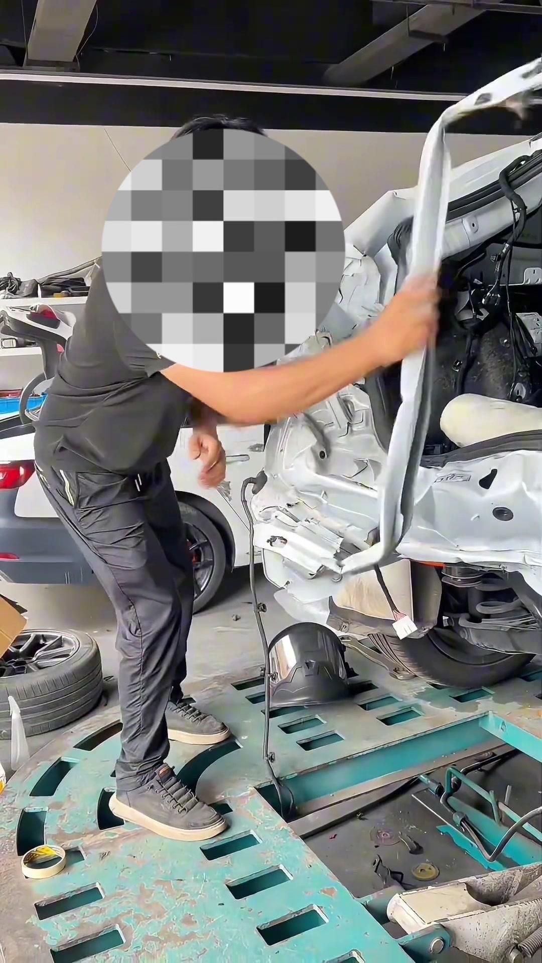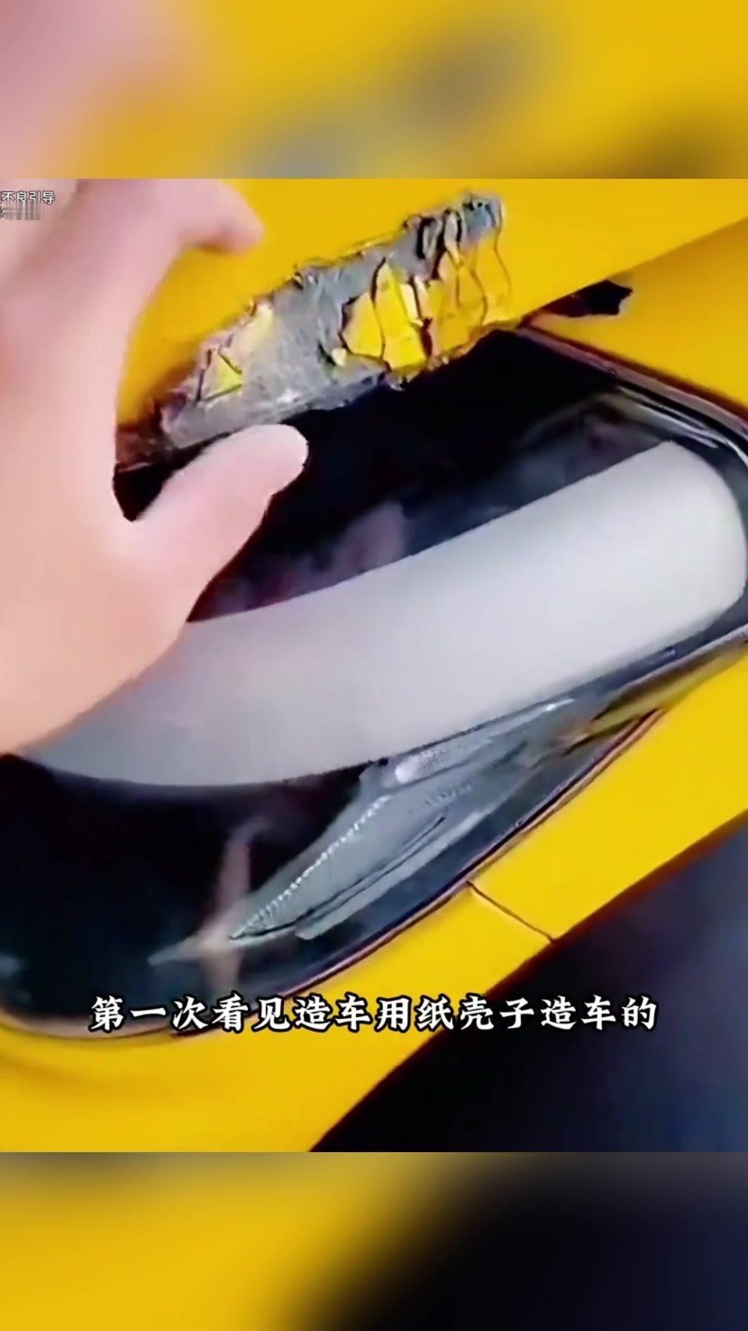 不光轮毂,前盖居然是纸糊的!真没见过用这种材料造车的,这安全性能有多差简直不敢想