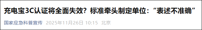 官方回应“3C认证或全面失效”:已获3C认证的充电宝不受新标准影响,可继续正常使用,仍可携带登机