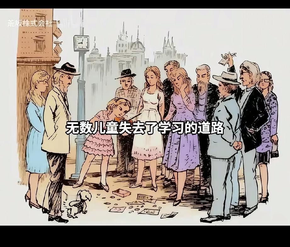 朝鲜的课文:挨饿的欧洲人。 无数的儿童去了学习的道路,为了糊口而在街头流浪。